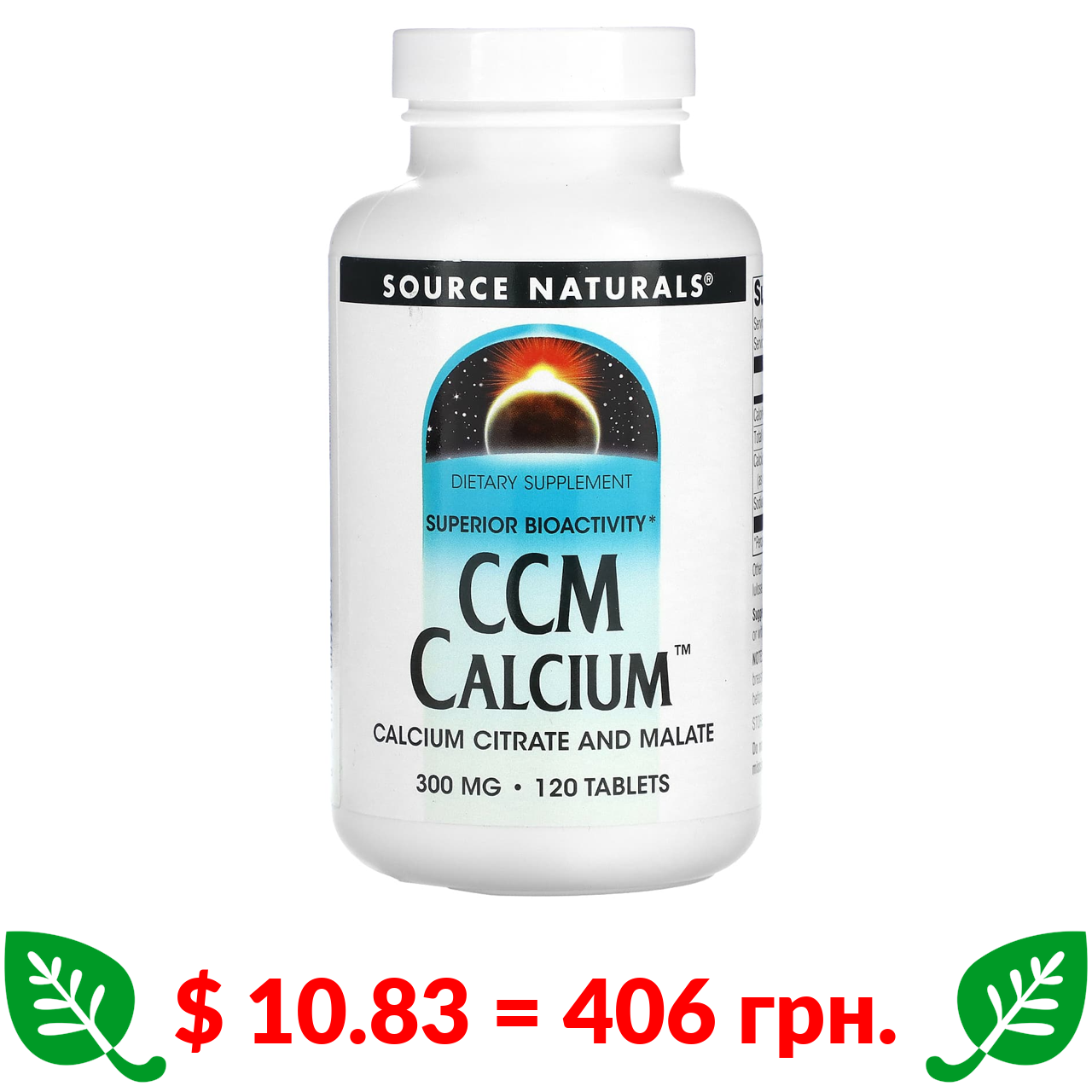 $ 10.83 = 406 грн. Source Naturals, CCM Calcium, 300 mg, 120 Tablets