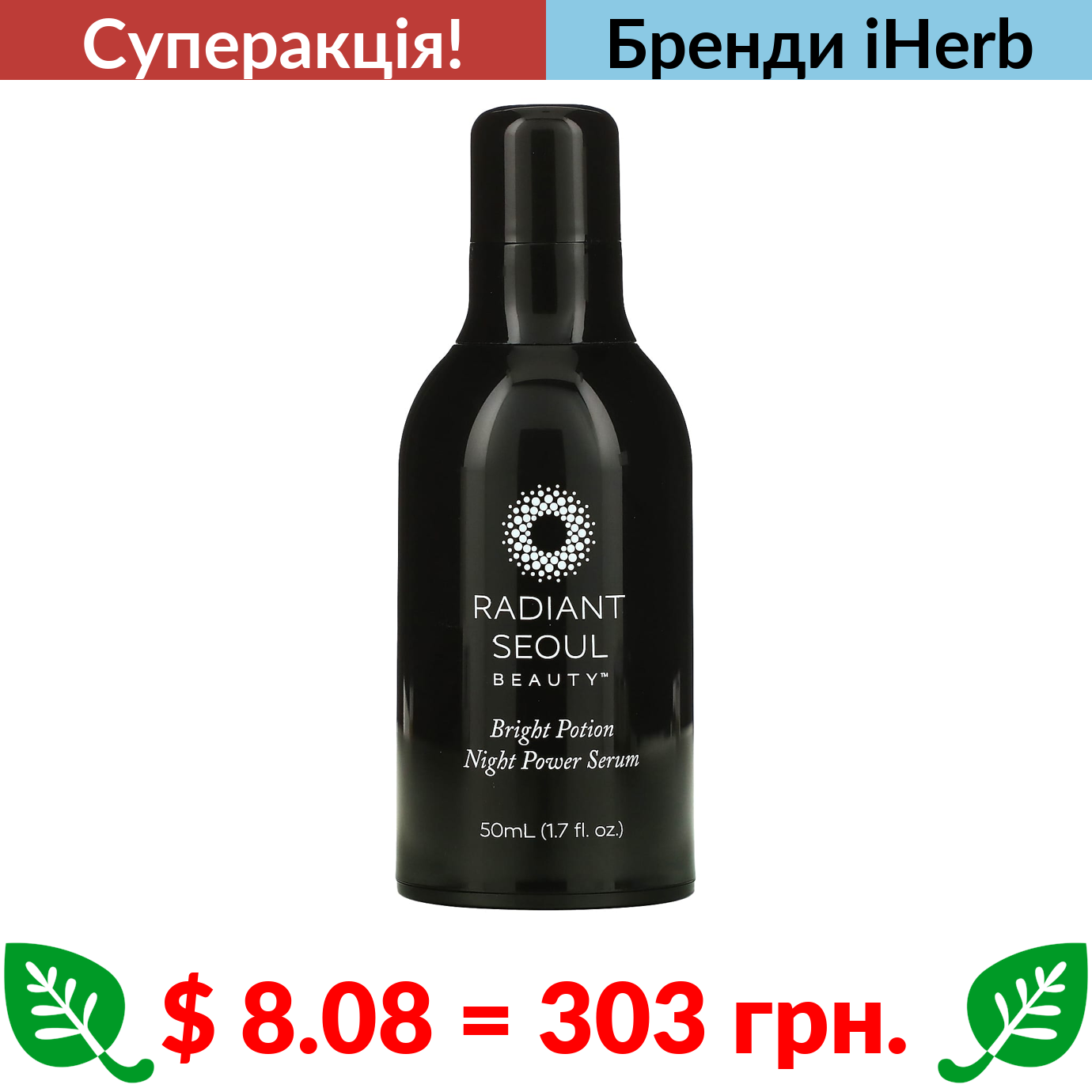 $ 8.08 = 303 грн. ???? cуперакція! ???? Radiant Seoul, Bright Potion, Night Power Serum, 1.7 fl oz (50 ml)