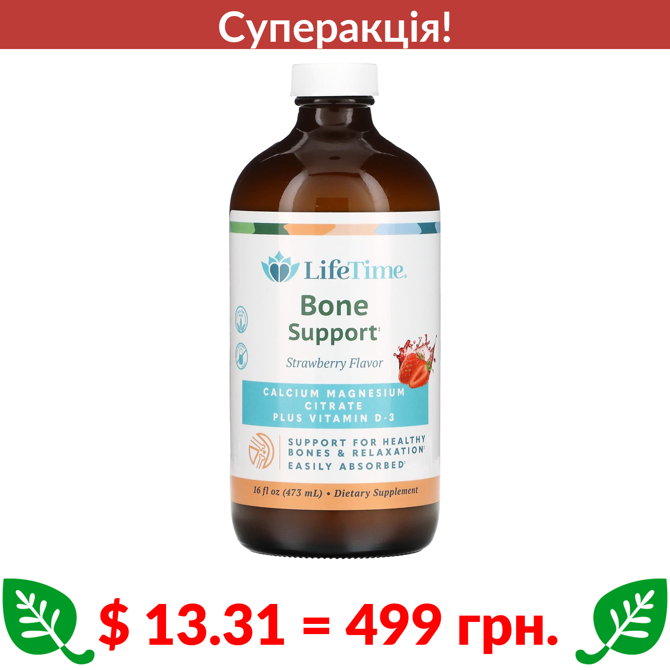$ 13.31 = 499 грн. ???? cуперакція! ???? LifeTime Vitamins, оригінальний цитрат кальцію й магнію, полуниця, 473 мл (16 рідк. унцій)