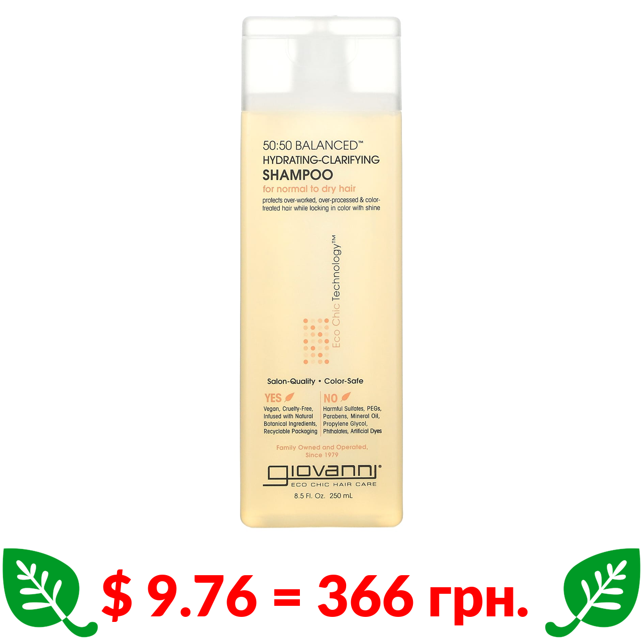 $ 9.76 = 366 грн. Giovanni, 50:50 Balanced, зволожувальний і очищувальний шампунь, для нормального та сухого волосся, 250 мл (8,5 рідк. унції)