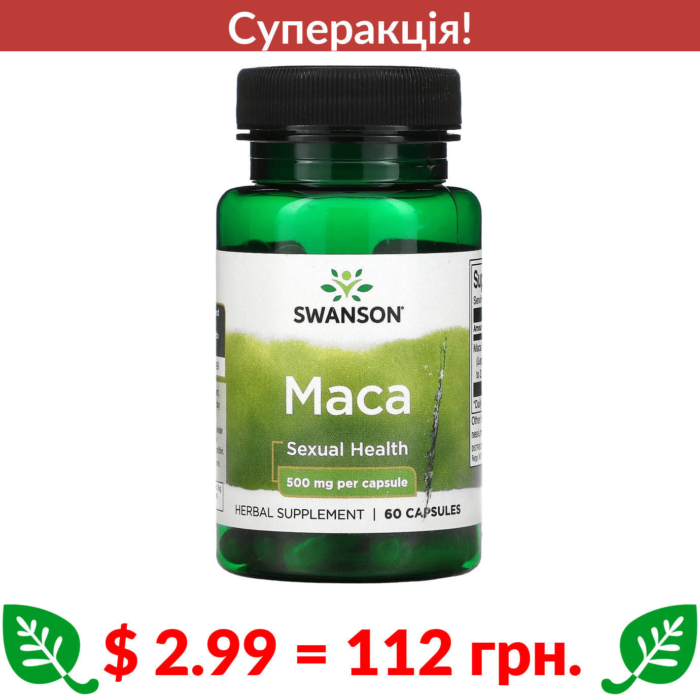 $ 2.99 = 112 грн. ???? cуперакція! ???? Swanson, Maca, 500 mg, 60 Capsules