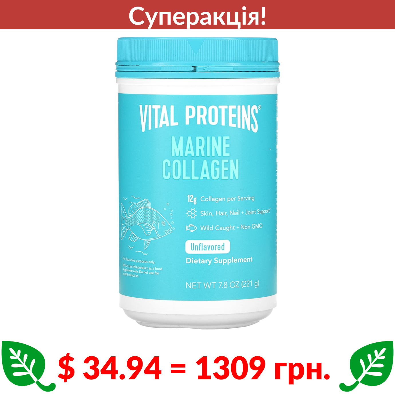 $ 34.94 = 1309 грн. ???? cуперакція! ???? Vital Proteins, морський колаген, з риби, виловленої в умовах дикої природи, без смаку, 221 г (7,8 рідк. унцій)