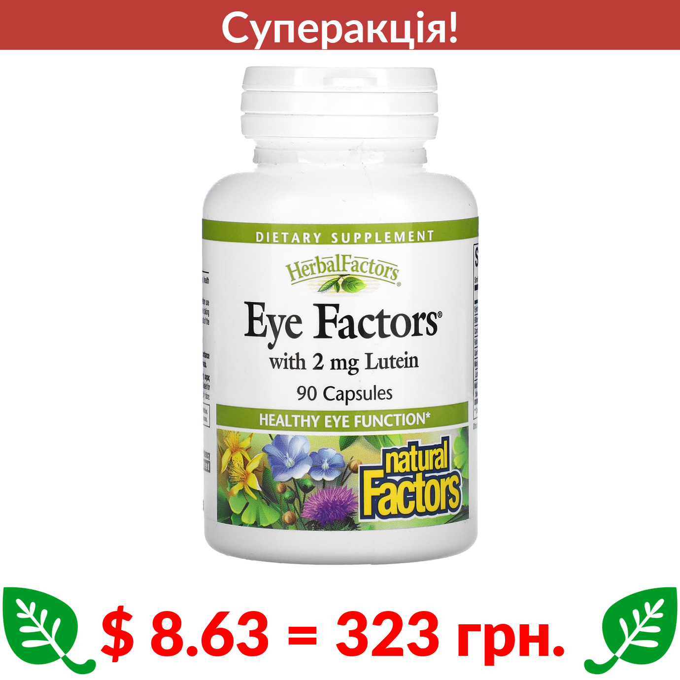 $ 8.63 = 323 грн. ???? cуперакція! ???? Natural Factors, Eye Factors із 2 мг лютеїну, 90 капсул