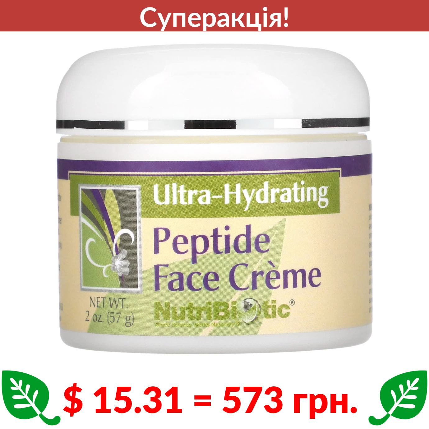 $ 15.31 = 573 грн. ???? cуперакція! ???? NutriBiotic, крем для обличчя з пептидом, ультразволожуючий, 57 г (2 унції)