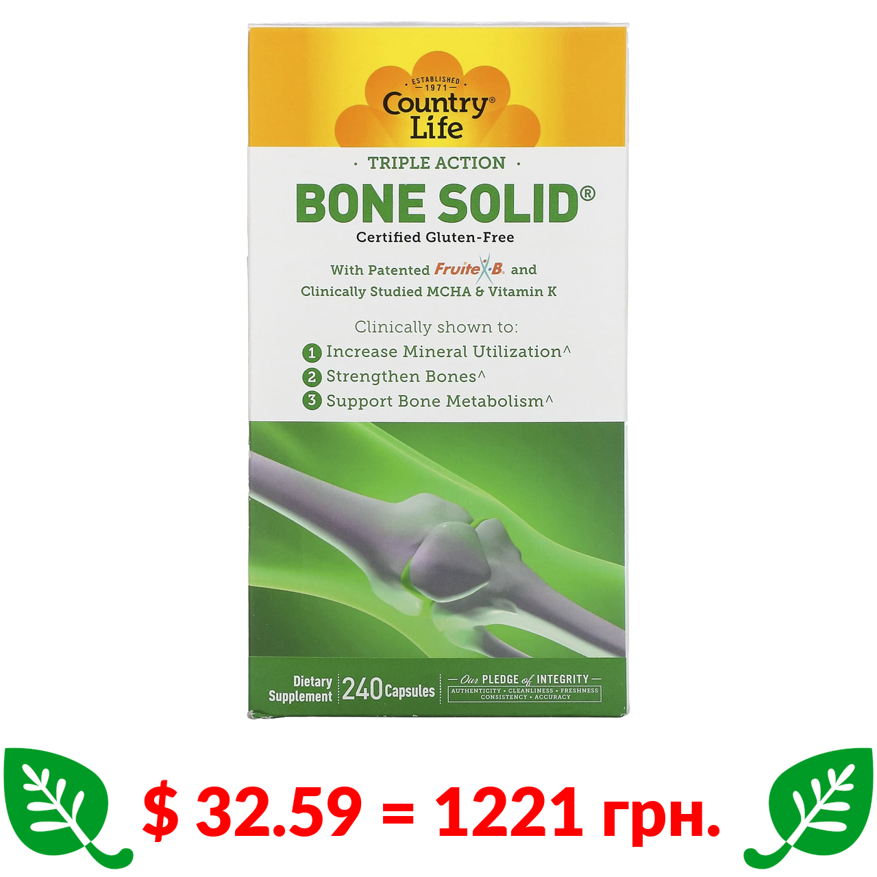 $ 32.59 = 1221 грн. Country Life, Triple Action Bone Solid, 240 Capsules