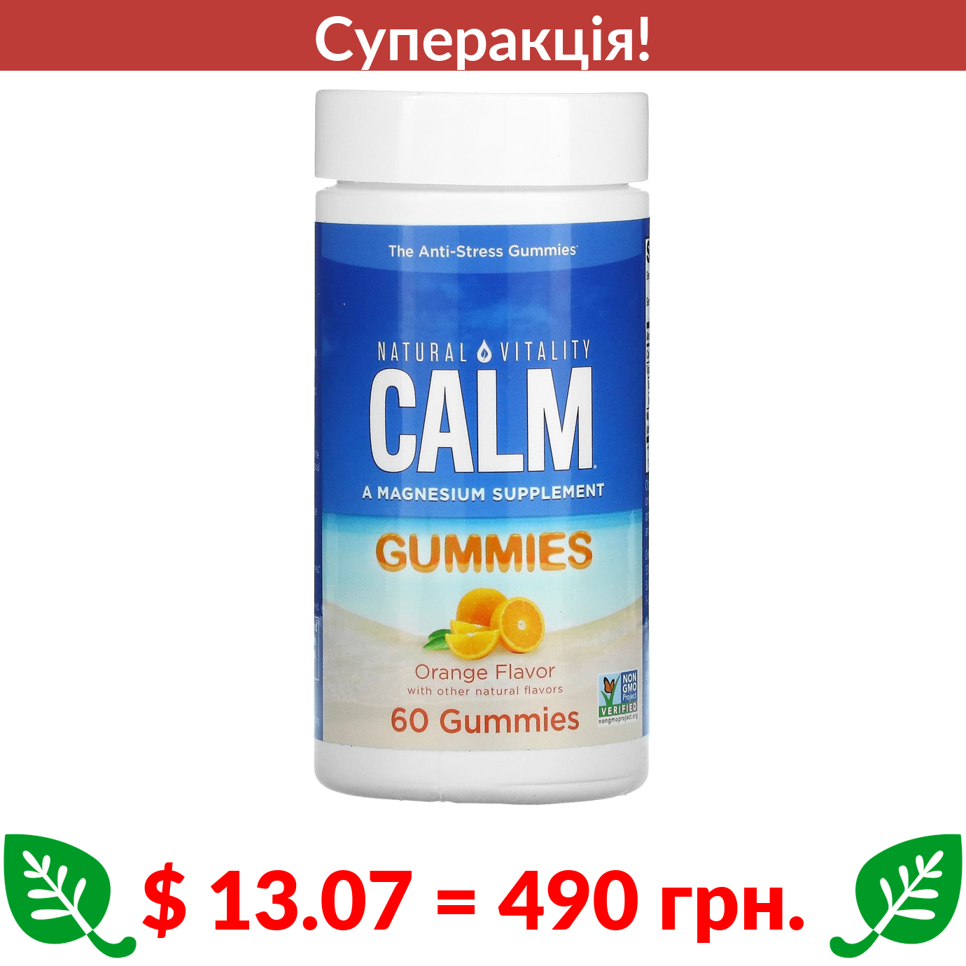 $ 13.07 = 490 грн. ???? cуперакція! ???? Natural Vitality, CALM, жувальні мармеладки від стресу, апельсин, 60 жувальних таблеток