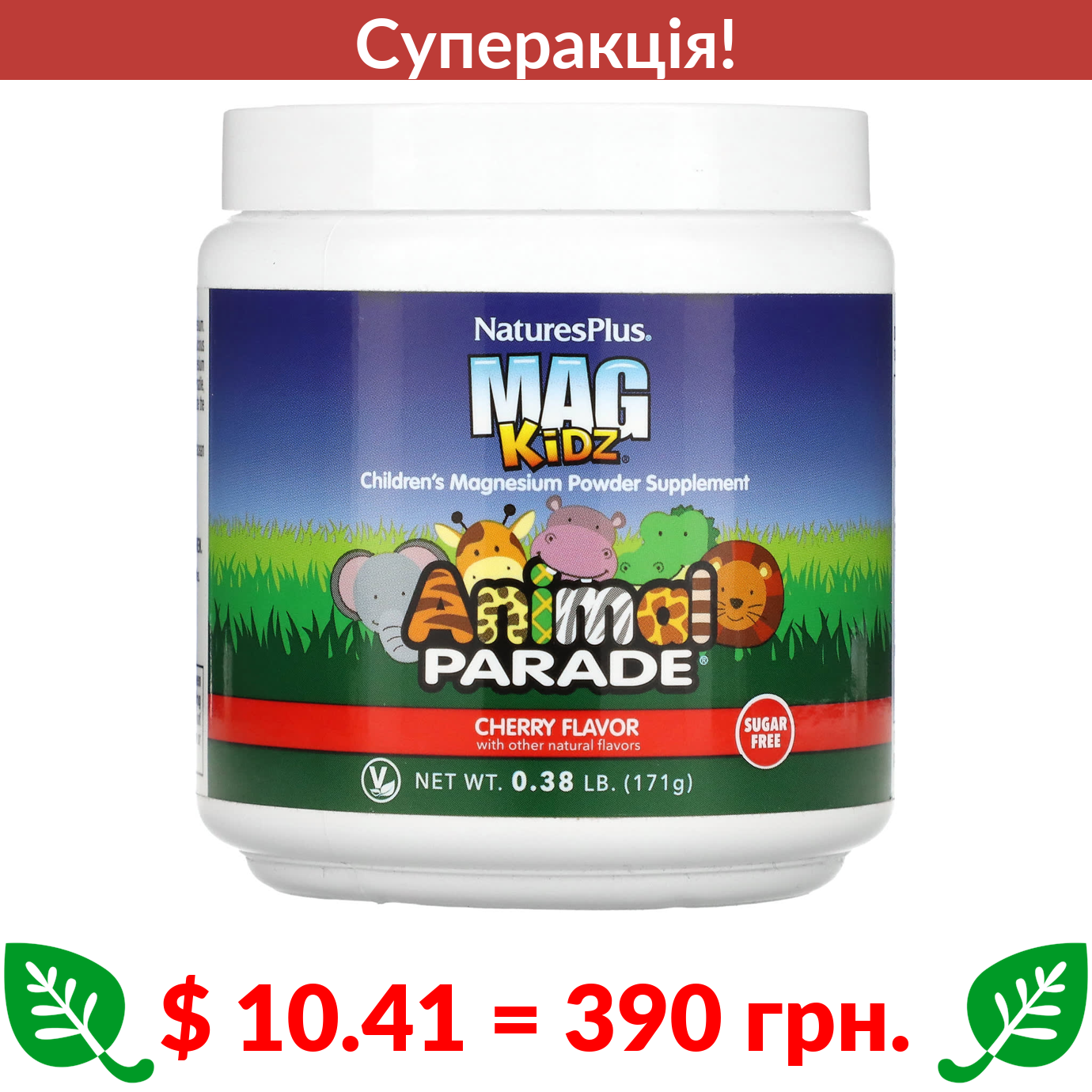 $ 10.41 = 390 грн. ???? cуперакція! ???? Nature’s Plus, Source of Life, Animal Parade, MagKidz, магній для дітей, з натуральним ароматизатором «вишня», 171 г (0,37 фунтів)