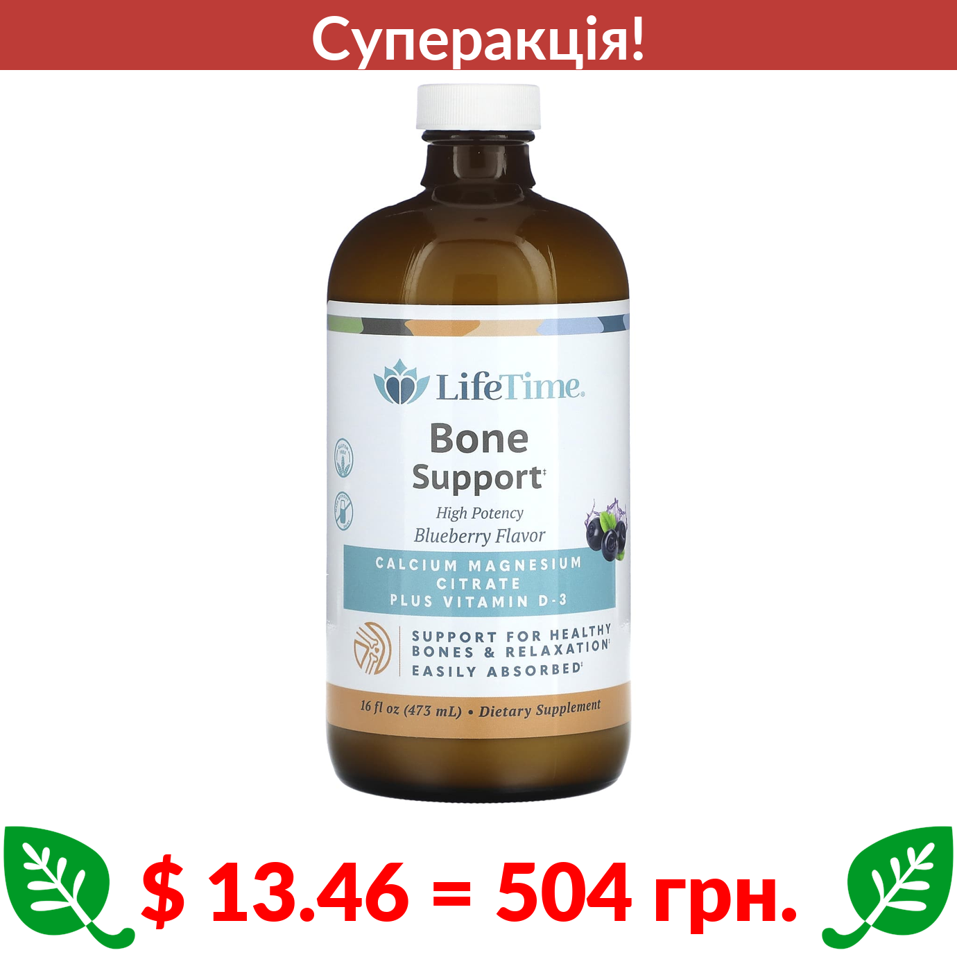 $ 13.46 = 504 грн. ???? cуперакція! ???? LifeTime Vitamins, цитрат магнію та кальцію з вітаміном D3, зі смаком лохини, 473 мл (16 рідк. унцій)