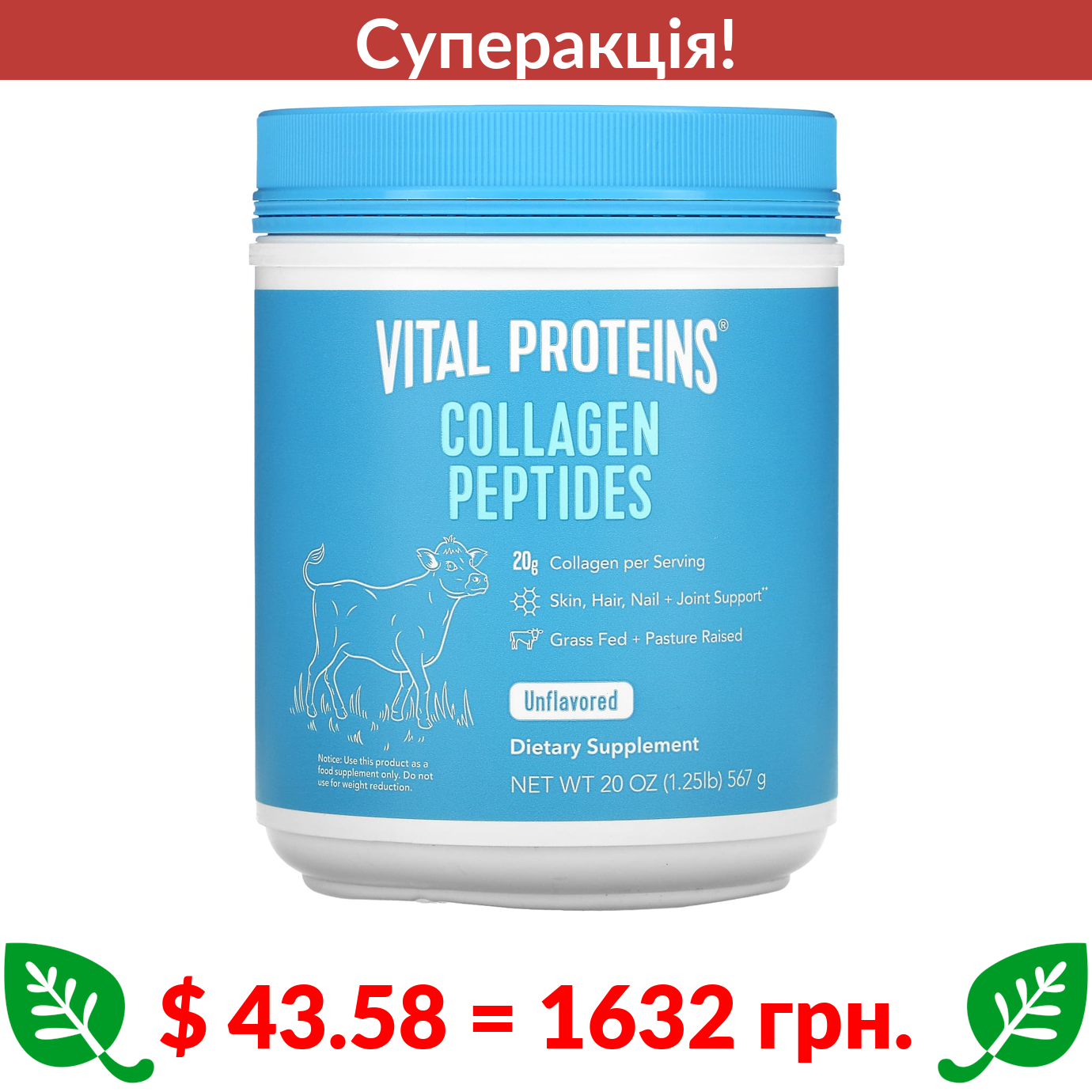 $ 43.58 = 1632 грн. ???? cуперакція! ???? Vital Proteins, пептиди колагену, з нейтральним смаком, 567 г (1,25 фунтів)