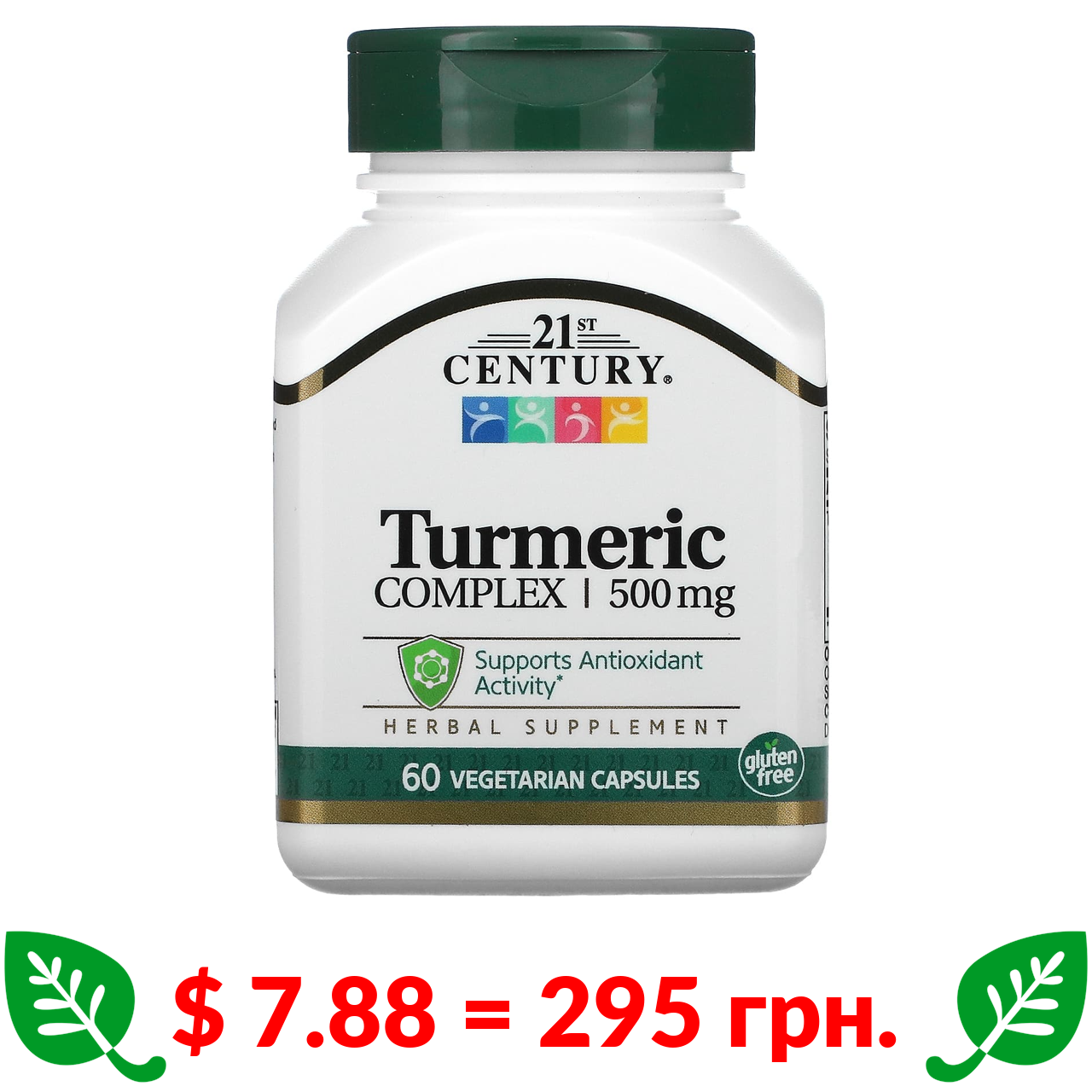 $ 7.88 = 295 грн. 21st Century, комплекс куркуми, 500 мг, 60 вегетаріанських капсул