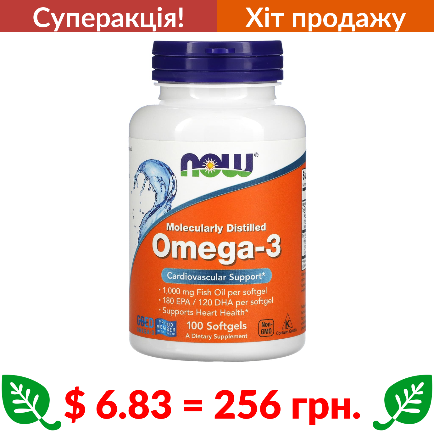$ 6.83 = 256 грн. ???? cуперакція! ???? Now Foods, омега-3, 180 мг ЕПК / 120 мг ДГК, 100 капсул