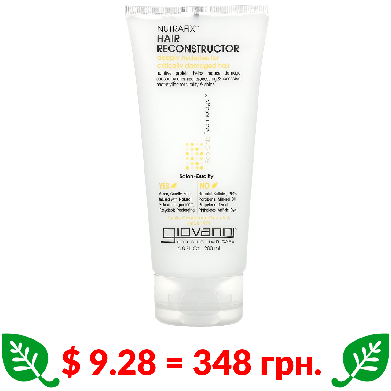 $ 9.28 = 348 грн. Giovanni, Nutrafix Hair Reconstructor, реконструктор для відновлення для дуже пошкодженого волосся, 200 мл (6,8 рідк. унції)