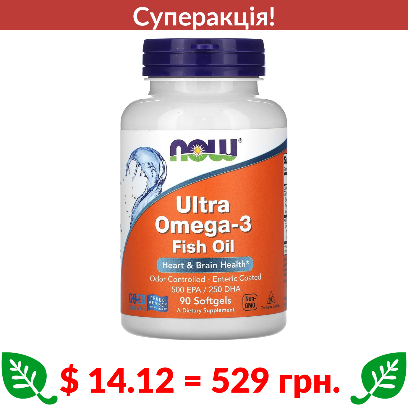 $ 14.12 = 529 грн. ???? cуперакція! ???? Now Foods, риб’ячий жир із ультраомега-3, 90 капсул