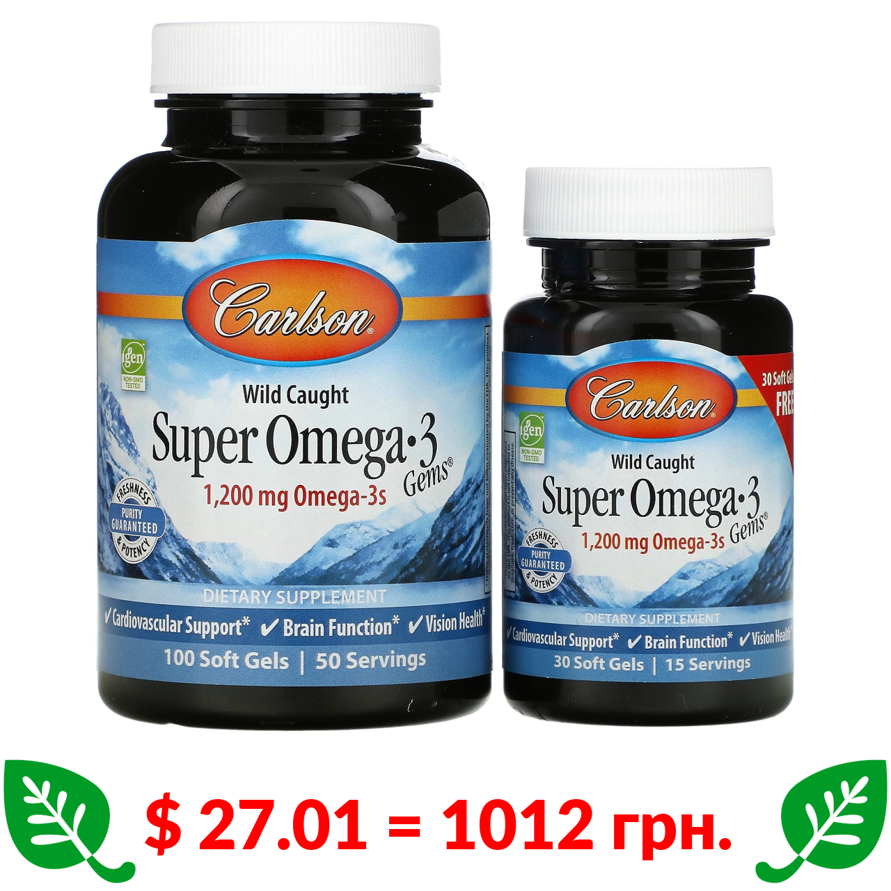 $ 27.01 = 1012 грн. Carlson, Wild Caught Super Omega-3 Gems, високоефективна омега-3 з морської риби, 600 мг, 100 плюс 30 капсул
