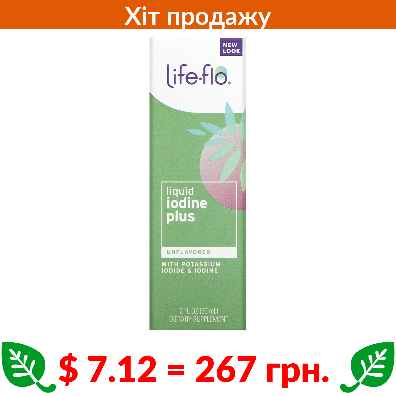 $ 7.12 = 267 грн. Life-flo, рідкий йод плюс, з йодидом калію та йодом, без ароматизаторів, 59 мл (2 рідк. унції)