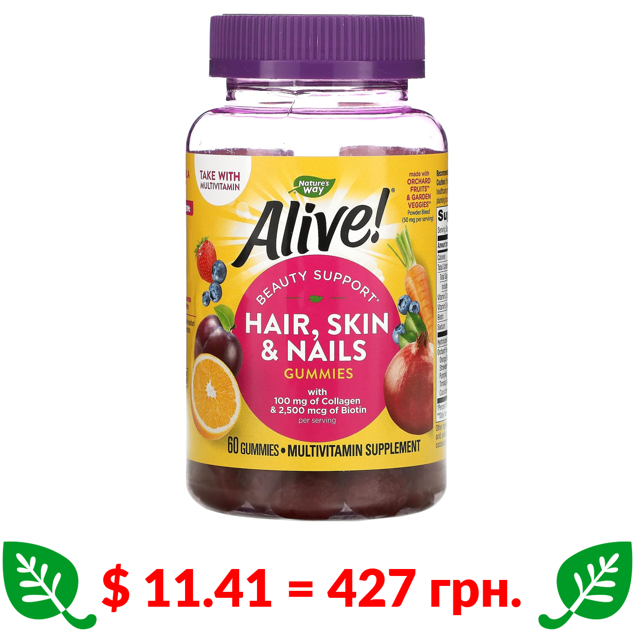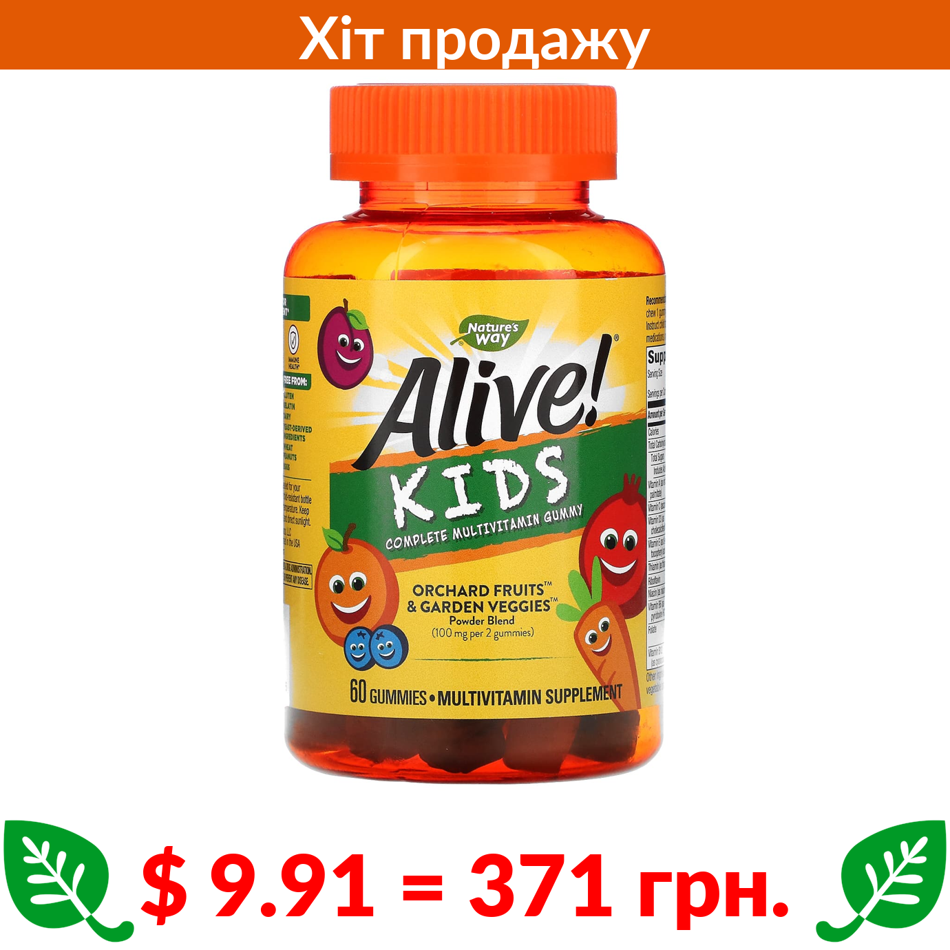 $ 9.91 = 371 грн. ????️ у кошику ????️ Nature’s Way, Alive! мультивітаміни для дітей, вишня, апельсин і виноград, 60 жувальних мармеладок