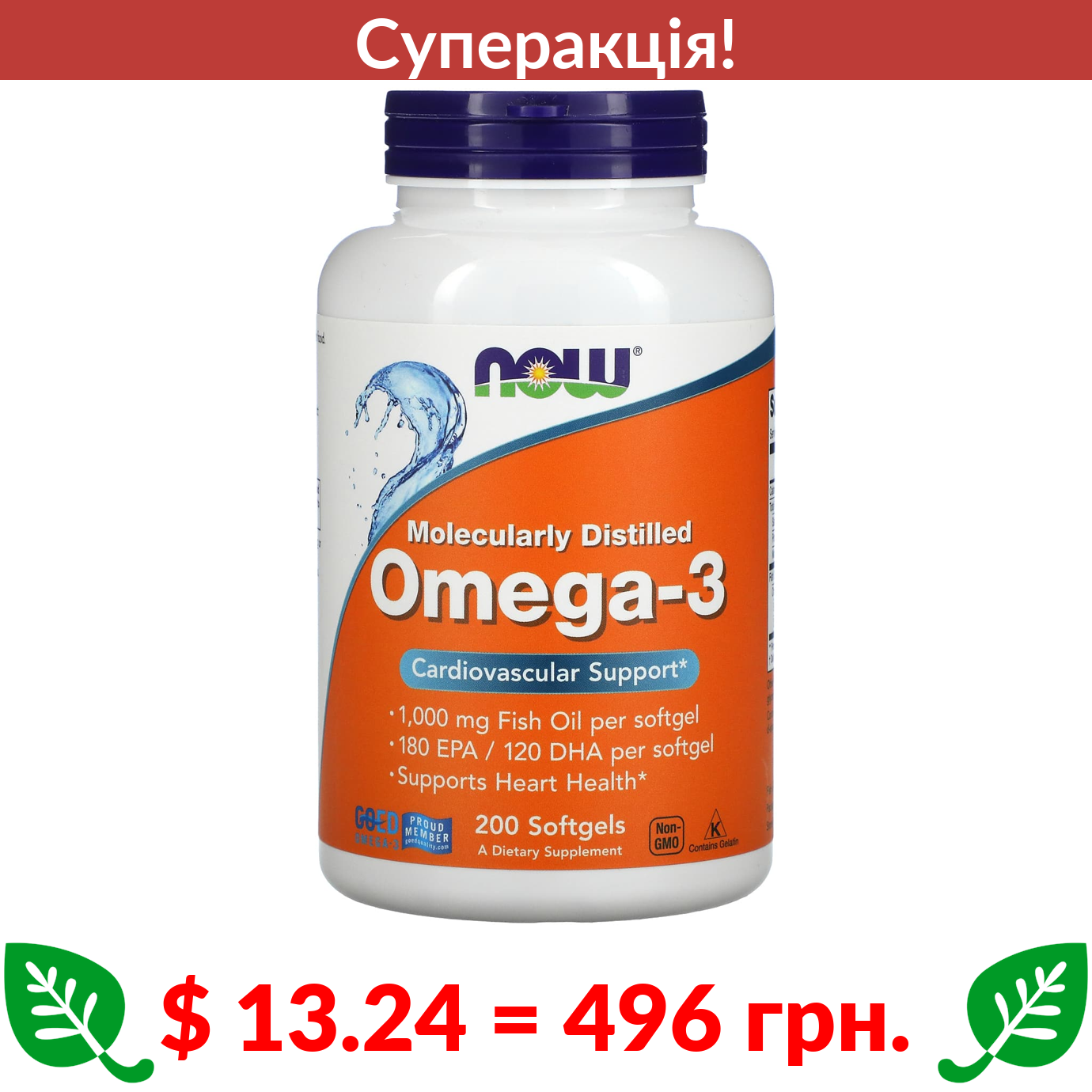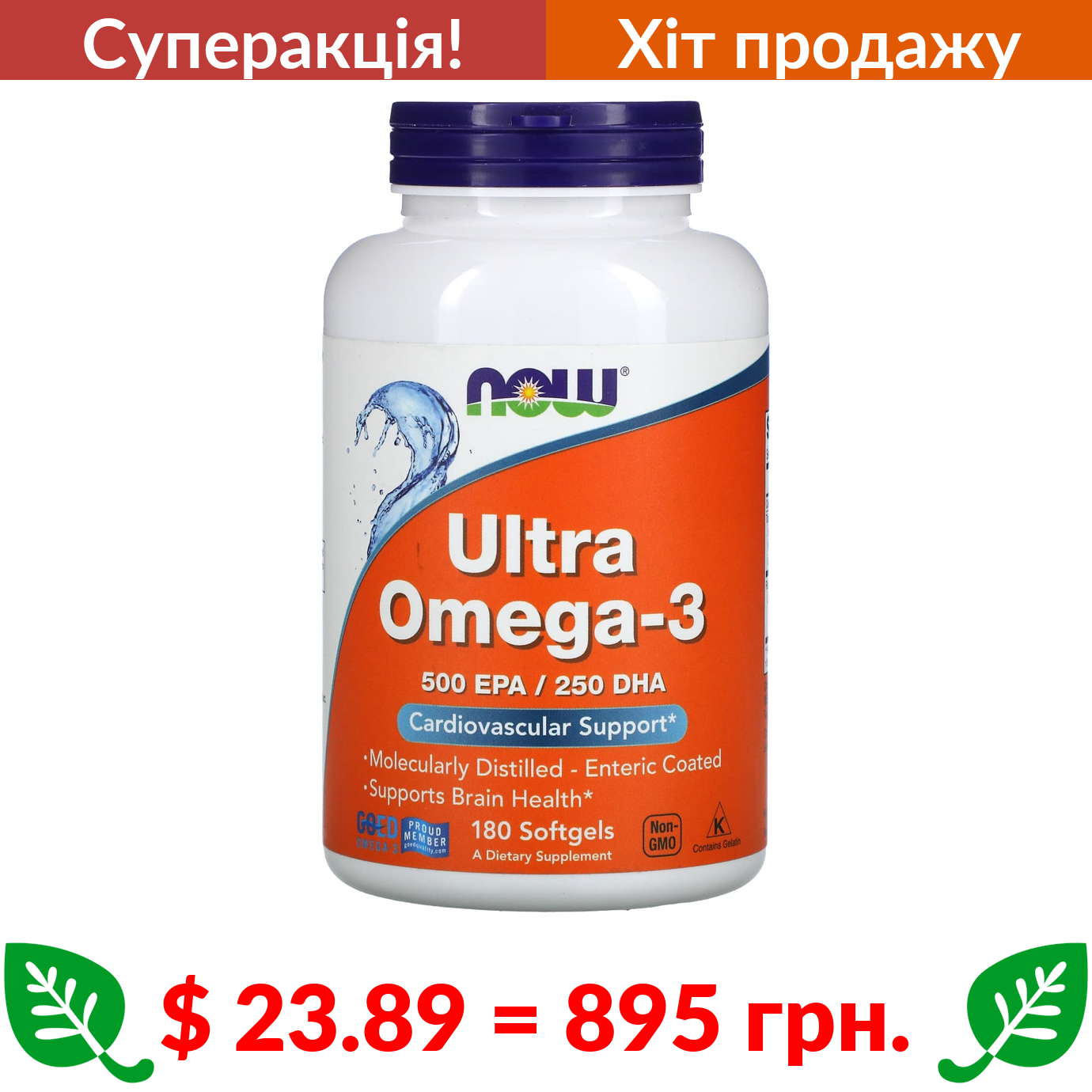 $ 23.89 = 895 грн. ???? cуперакція! ???? Now Foods, Ultra Omega-3, 500 ЕПК / 250 ДГК, 180 капсул, вкритих кишковорозчинною оболонкою
