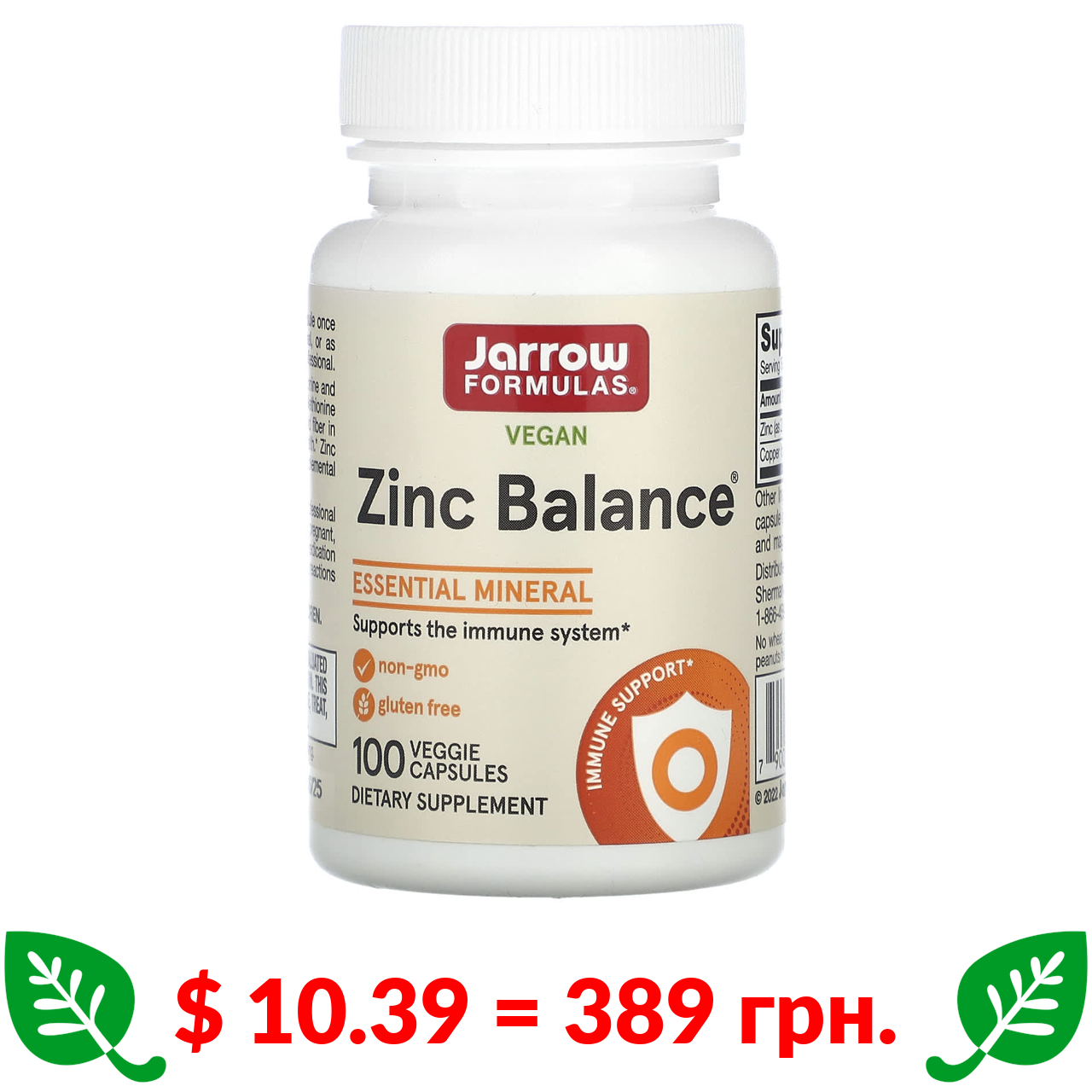 $ 10.39 = 389 грн. Jarrow Formulas, веганський баланс цинку, 100 рослинних капсул