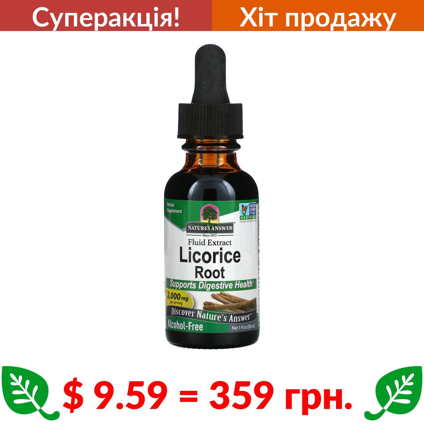 $ 9.59 = 359 грн. ???? cуперакція! ???? Nature’s Answer, солодка, без спирту, 2000 мг, 30 мл (1 рідк. унція)