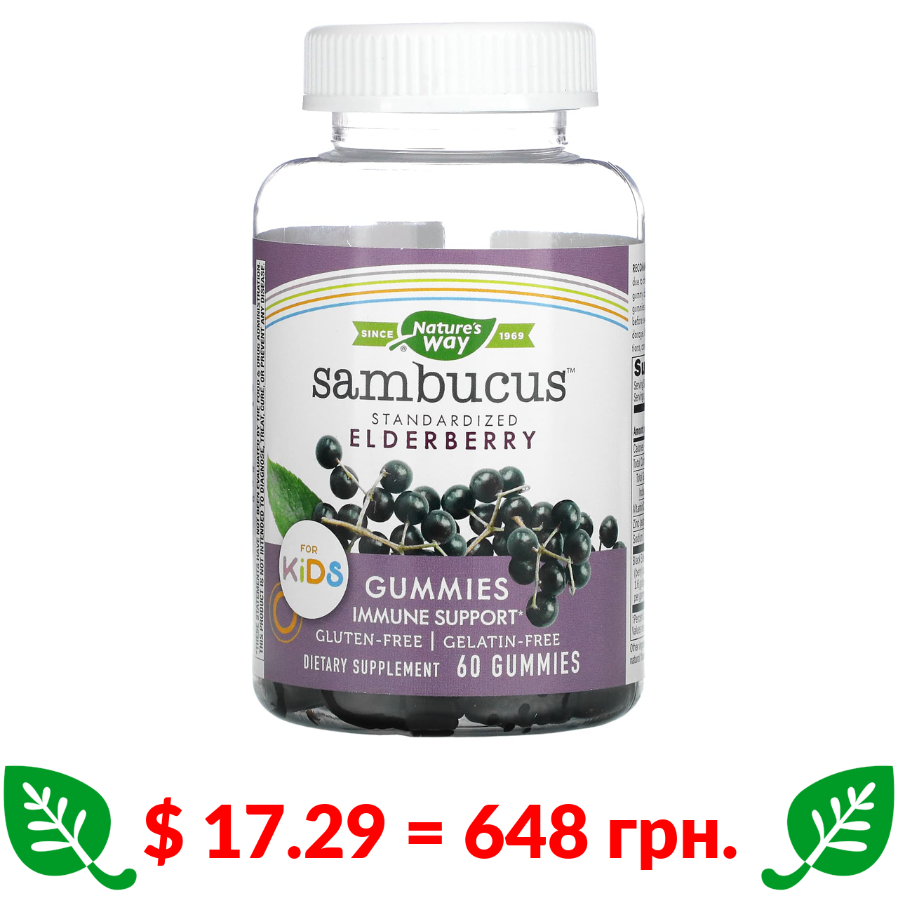 $ 17.29 = 648 грн. ????️ у кошику ????️ Nature’s Way, Sambucus, стандартизована бузина для дітей, 60 жувальних таблеток