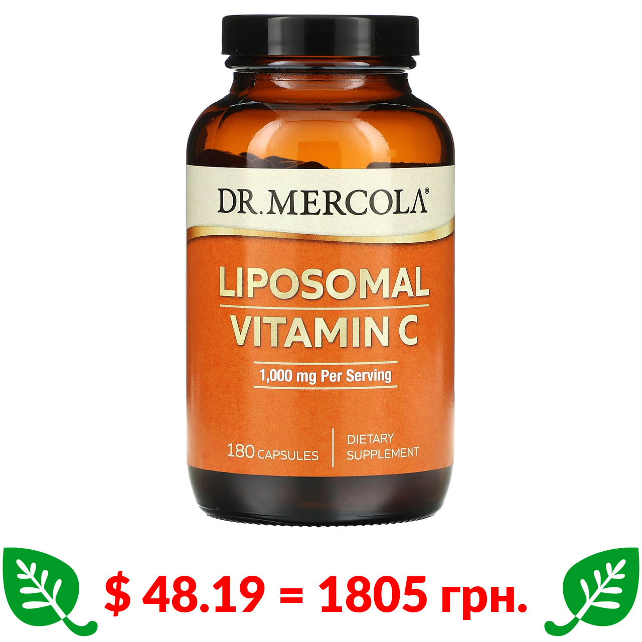 $ 48.19 = 1805 грн. Dr. Mercola, ліпосомальний вітамін С, 500 мг, 180 капсул
