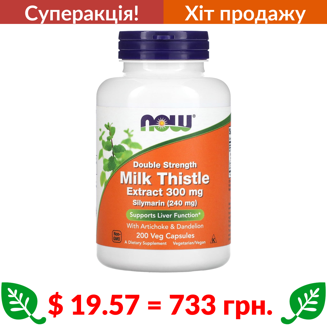 $ 19.57 = 733 грн. ???? cуперакція! ???? Now Foods, силімарин подвійної концентрації, 300 мг, 200 вегетаріанських капсул