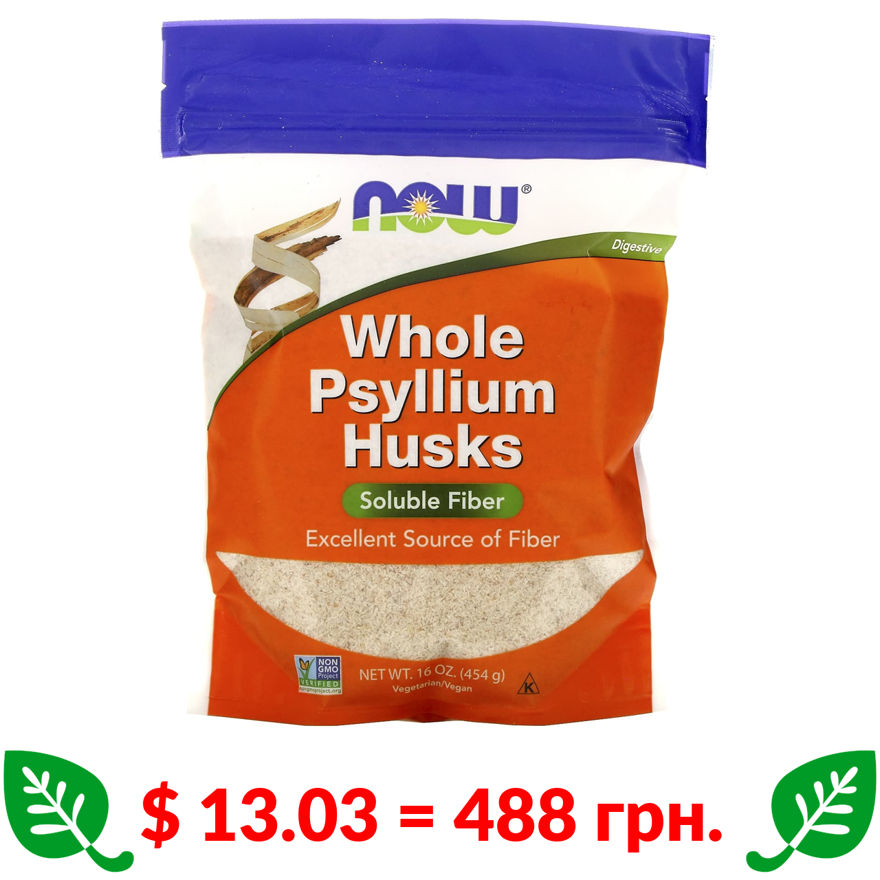 $ 13.03 = 488 грн. Now Foods, Цільне лушпиння подорожника, 454 г (16 унцій)