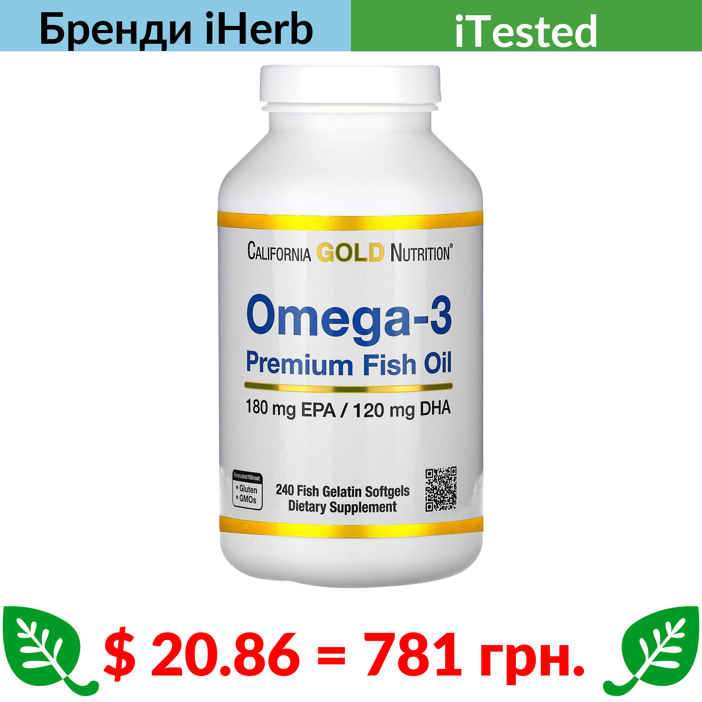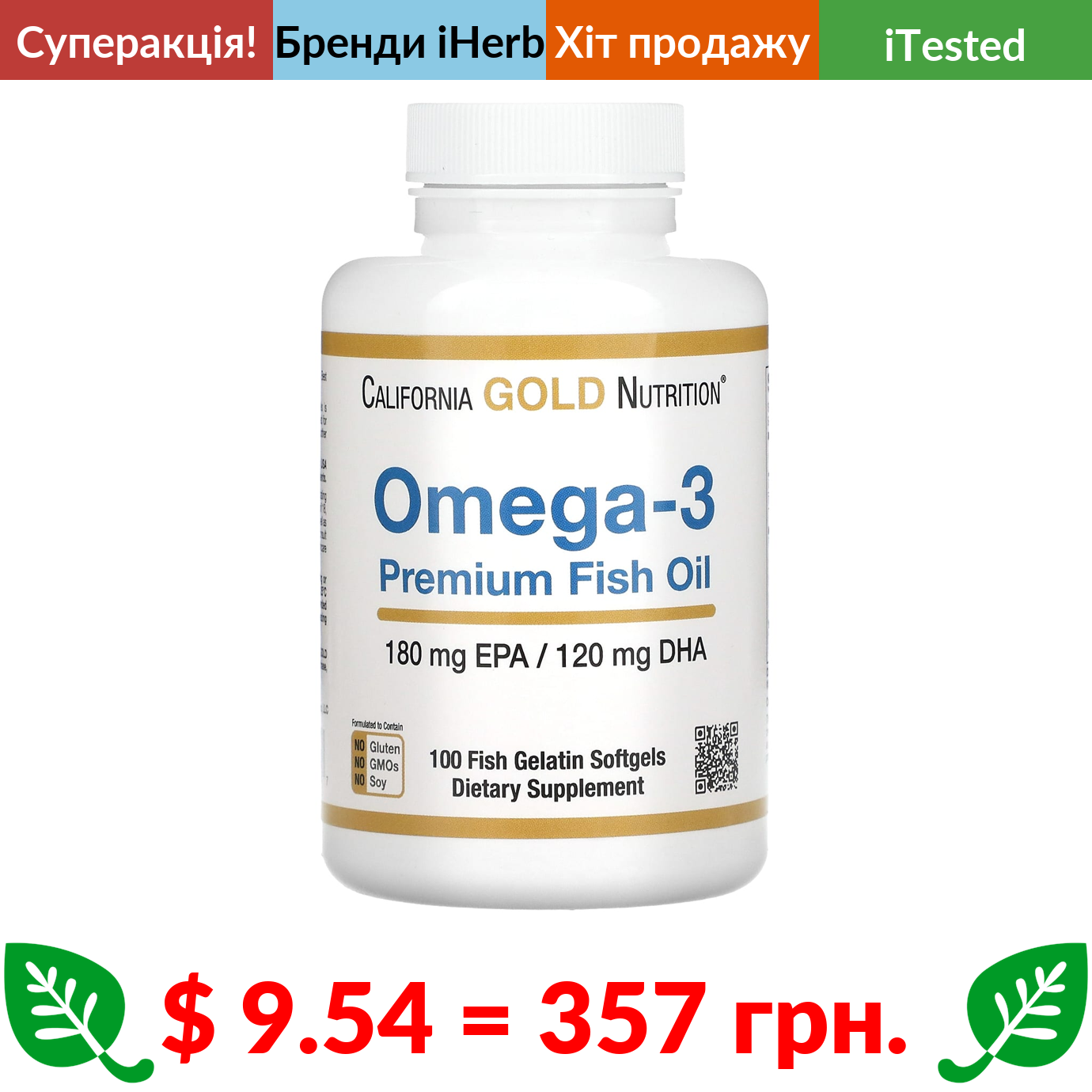 $ 9.54 = 357 грн. ???? cуперакція! ???? California Gold Nutrition, омега-3, риб’ячий жир преміальної якості, 180 мг ЕПК / 120 мг ДГК, 100 капсул із риб’ячого желатину