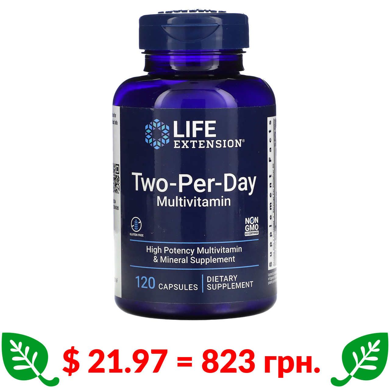 $ 21.97 = 823 грн. Life Extension, мультивітаміни для прийому двічі на день, 120 капсул