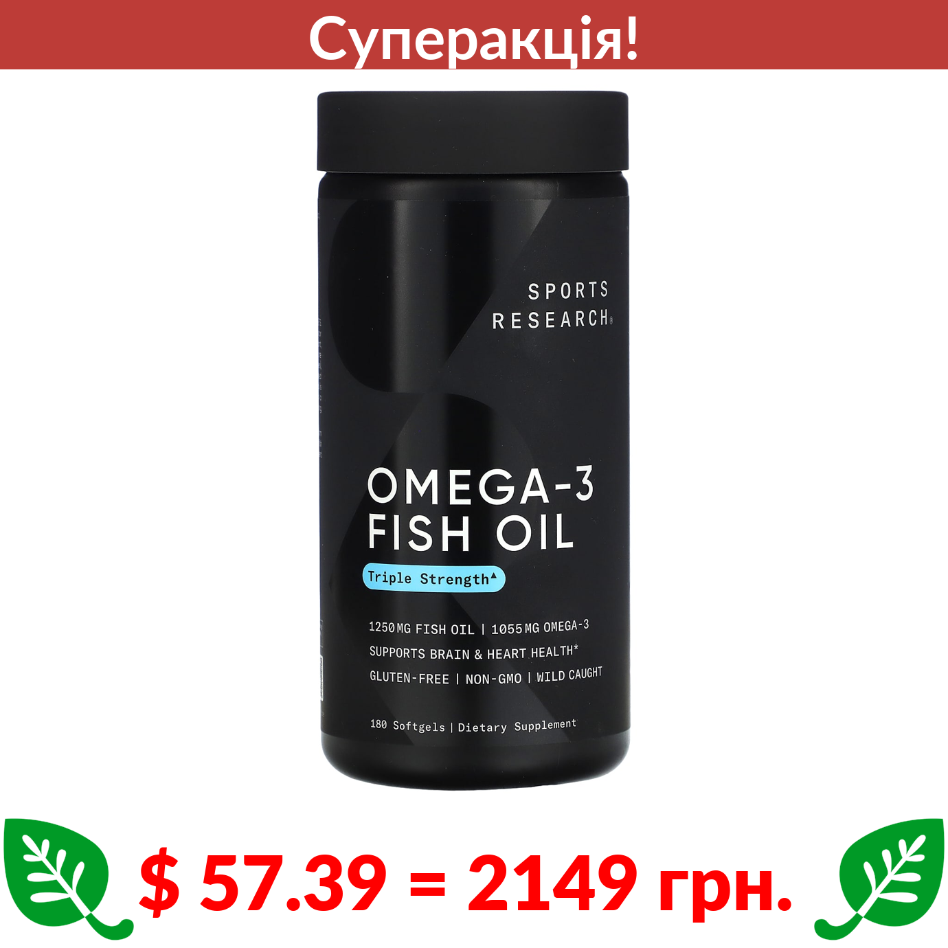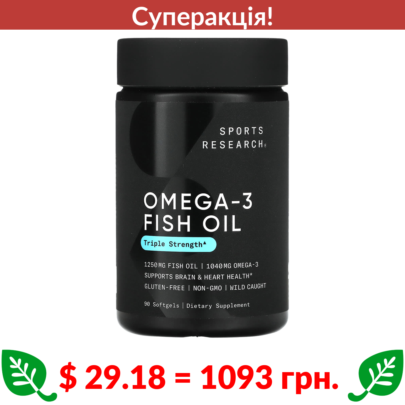 $ 29.18 = 1093 грн. ???? cуперакція! ???? Sports Research, риб’ячий жир з омега-3, потрійна сила, 1250 мг, 90 капсул