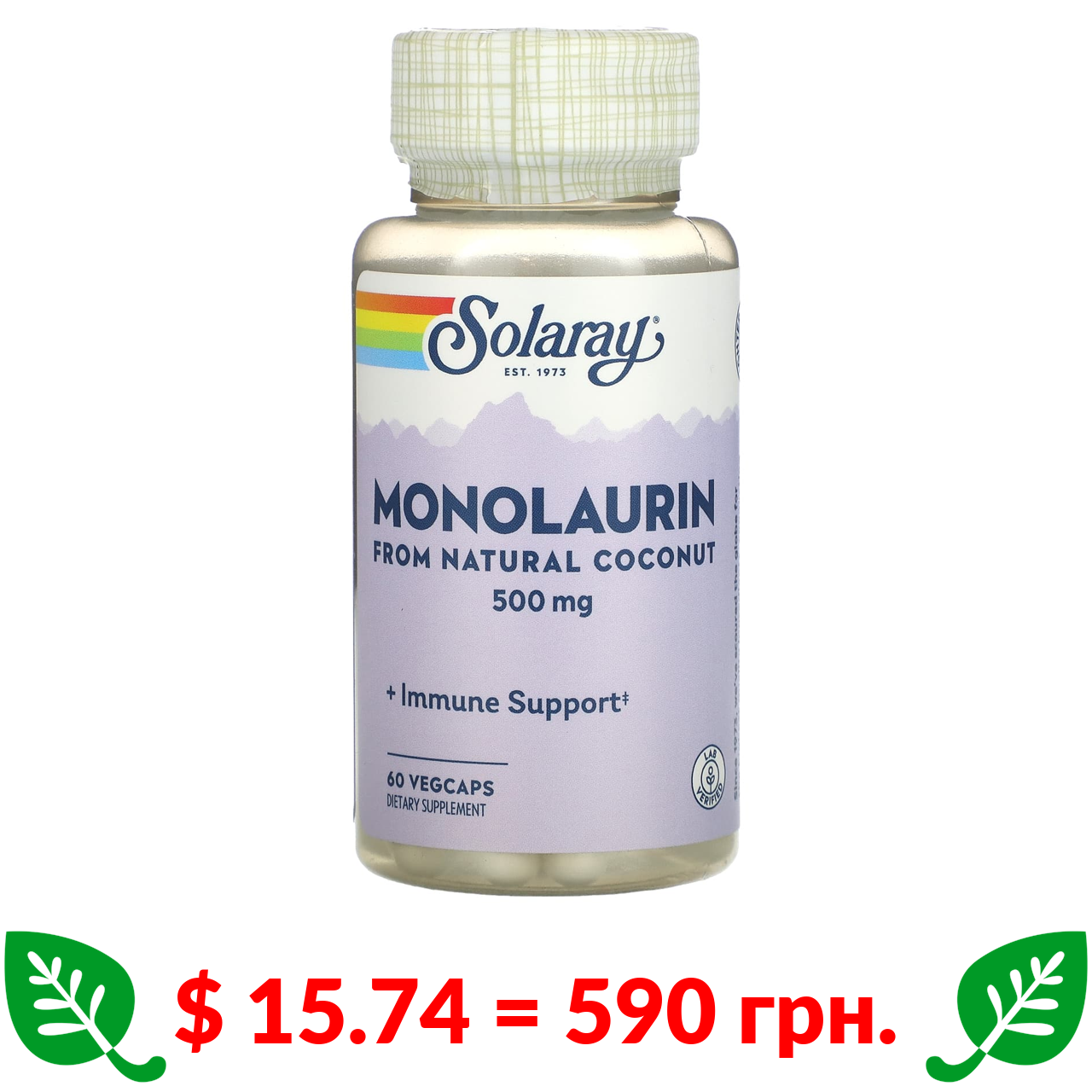 $ 15.74 = 590 грн. Solaray, монолаурин, 500 мг, 60 вегетаріанських капсул