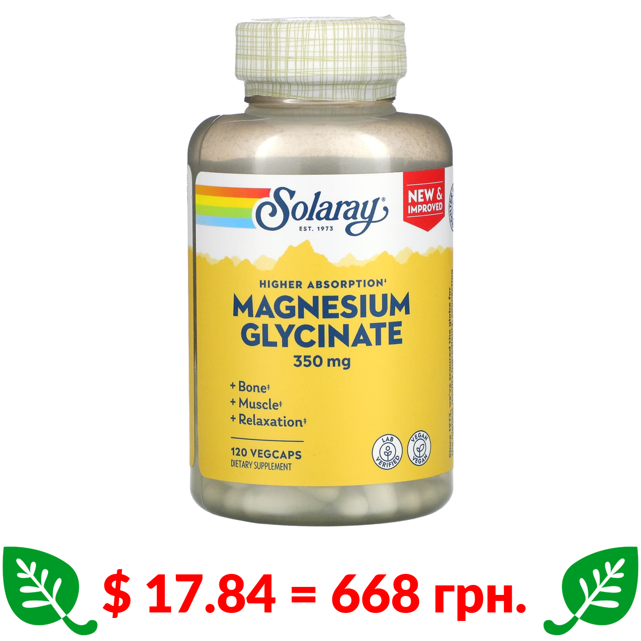 $ 11.47 = 430 грн. Doctor’s Best, повністю хелатований легко засвоюваний магній з мікроелементами Albion, 100 мг, 120 таблеток