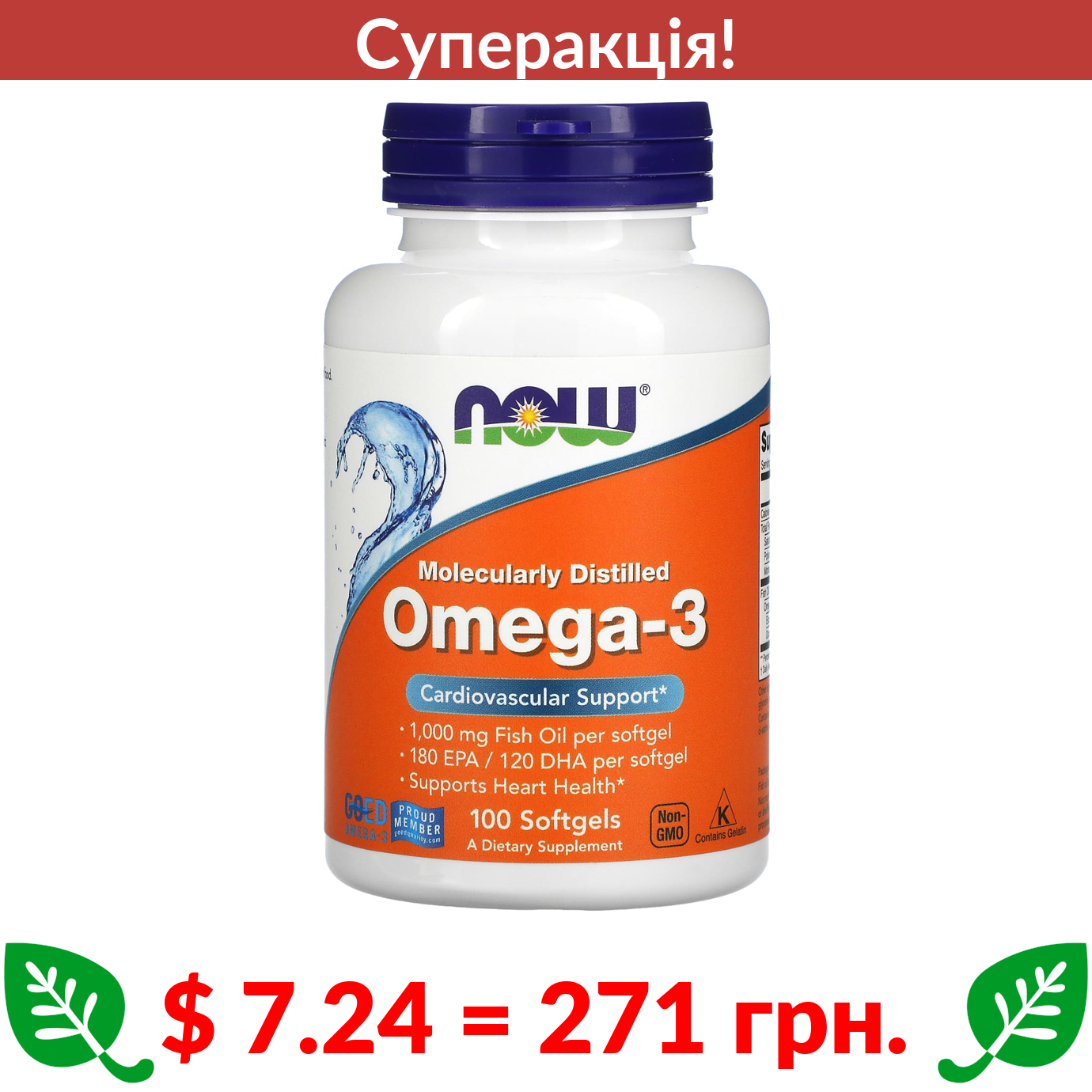 $ 7.24 = 271 грн. ???? cуперакція! ???? Now Foods, омега-3, 180 мг ЕПК / 120 мг ДГК, 100 капсул
