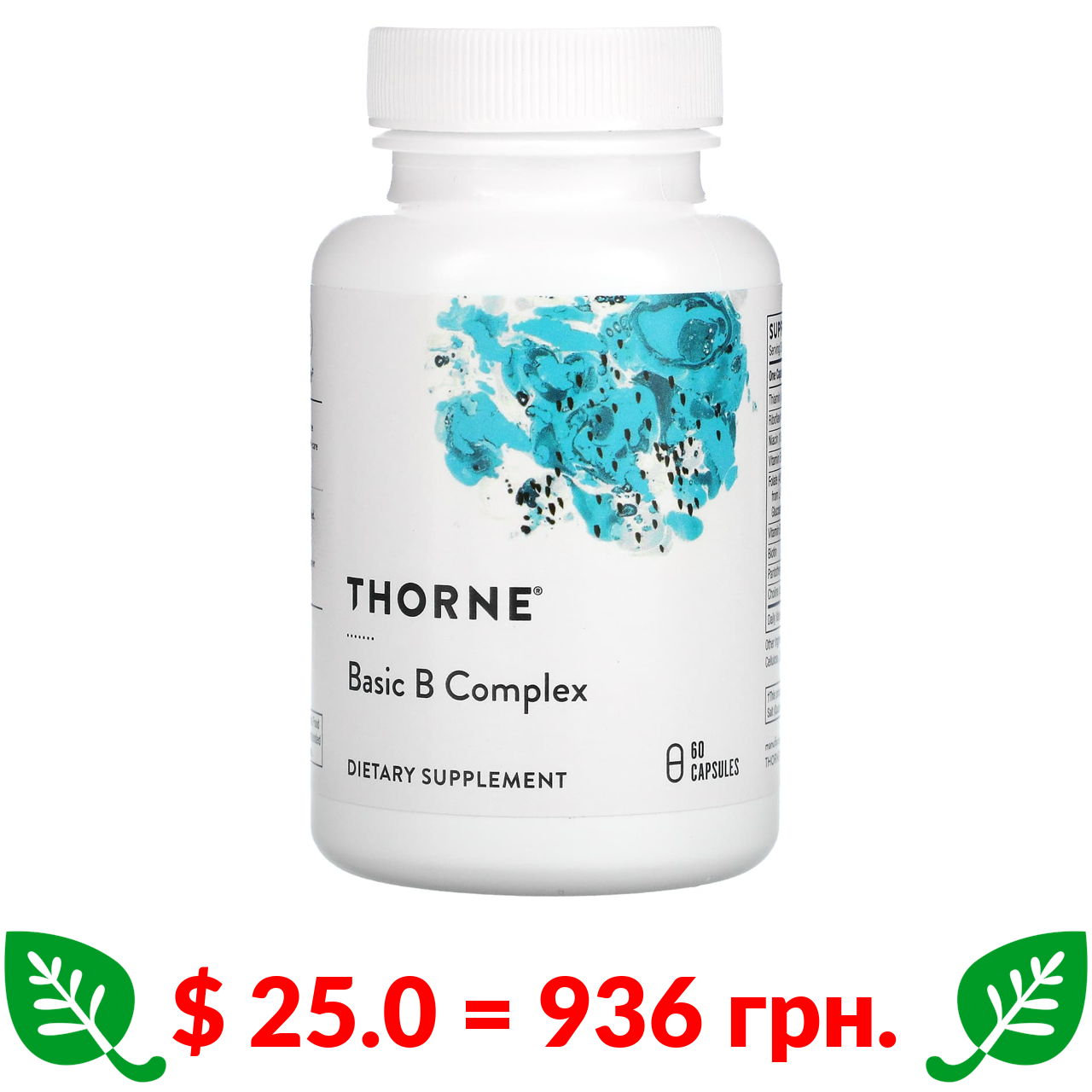 $ 25.0 = 936 грн. Thorne, комплекс основних вітамінів групи B, 60 капсул