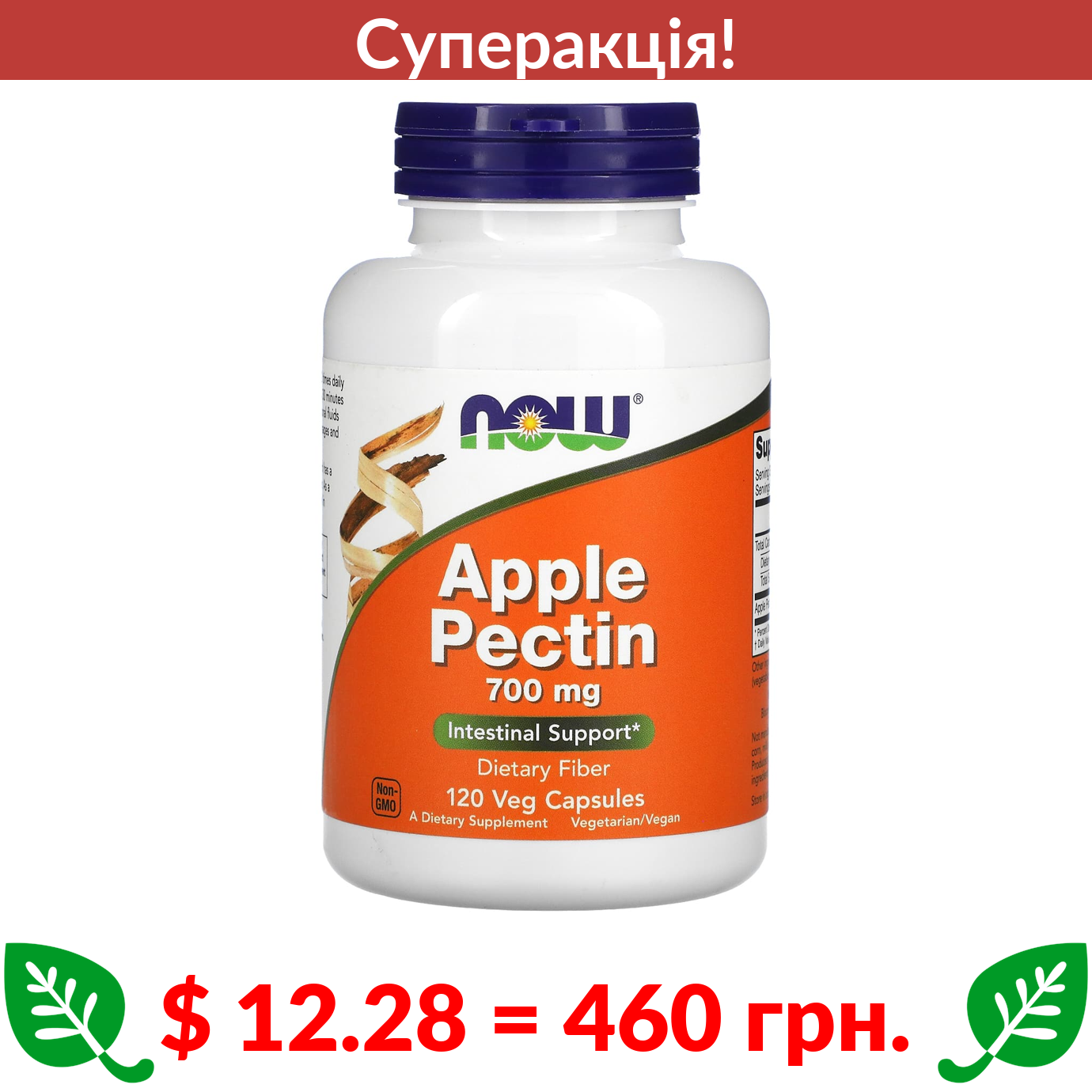$ 12.28 = 460 грн. ???? cуперакція! ???? Now Foods, яблучний пектин, 700 мг, 120 вегетаріанських капсул