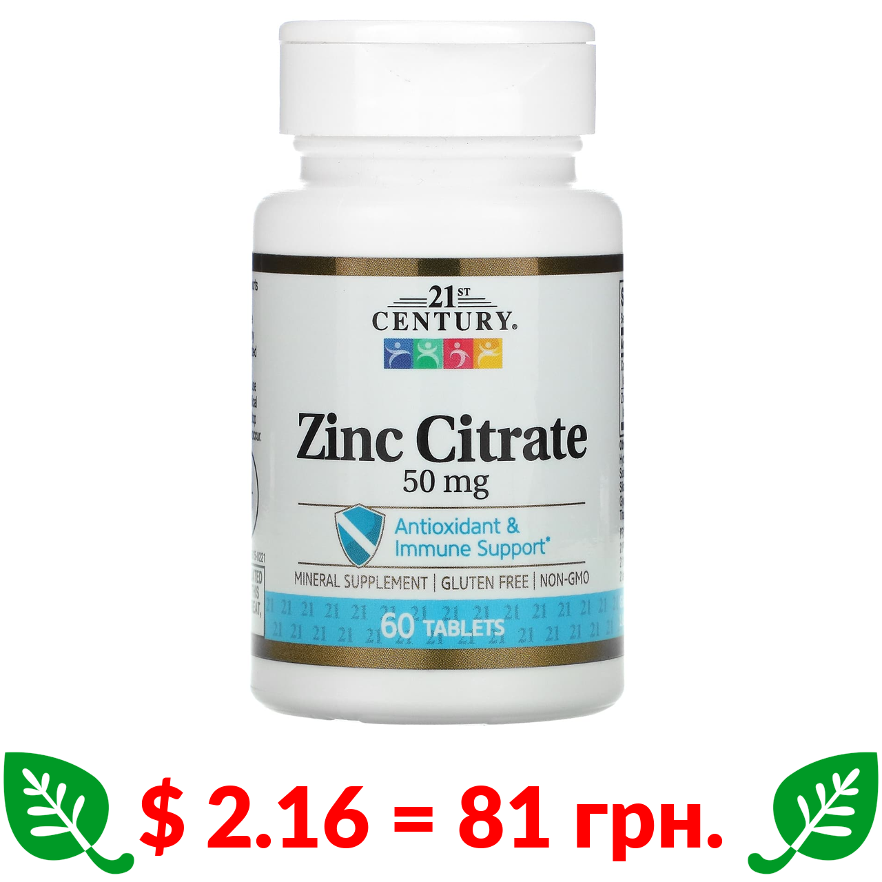 $ 5.14 = 193 грн. 21st Century, кальцій, магній, цинк і вітамін D3, 90 таблеток