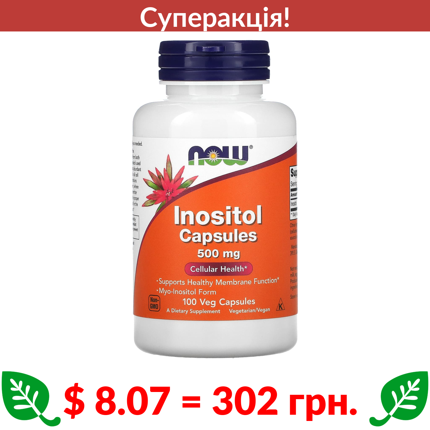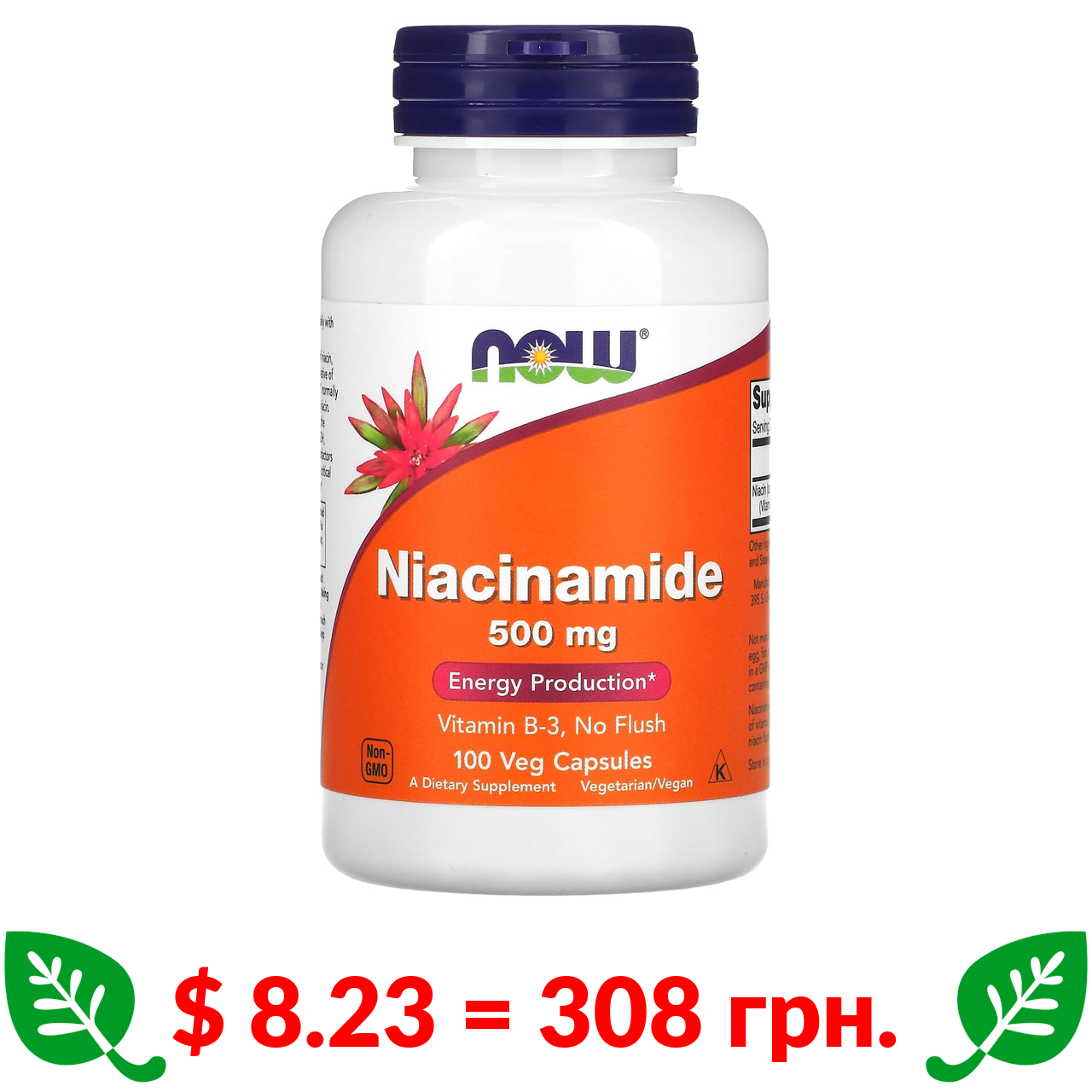 $ 8.23 = 308 грн. Now Foods, нікотинамід, 500 мг, 100 вегетаріанських капсул