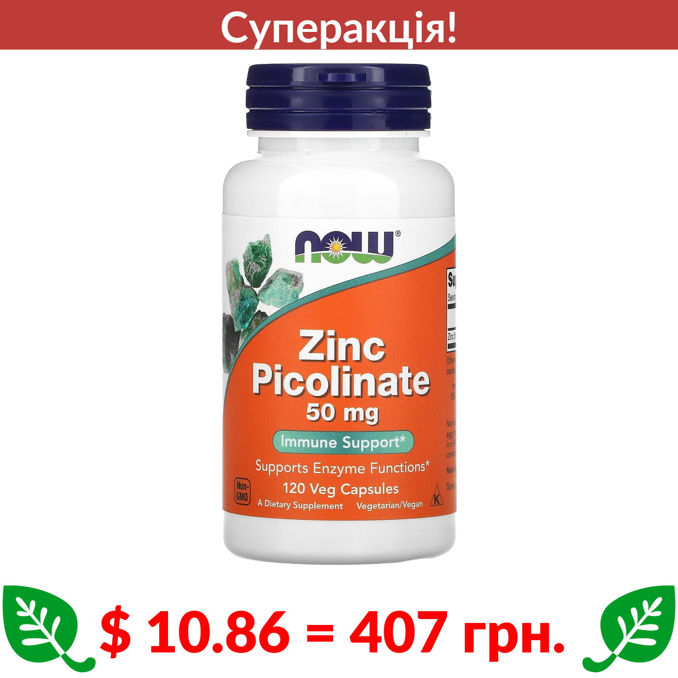 $ 8.94 = 335 грн. ???? cуперакція! ???? Now Foods, цинк, 50 мг, 250 таблеток