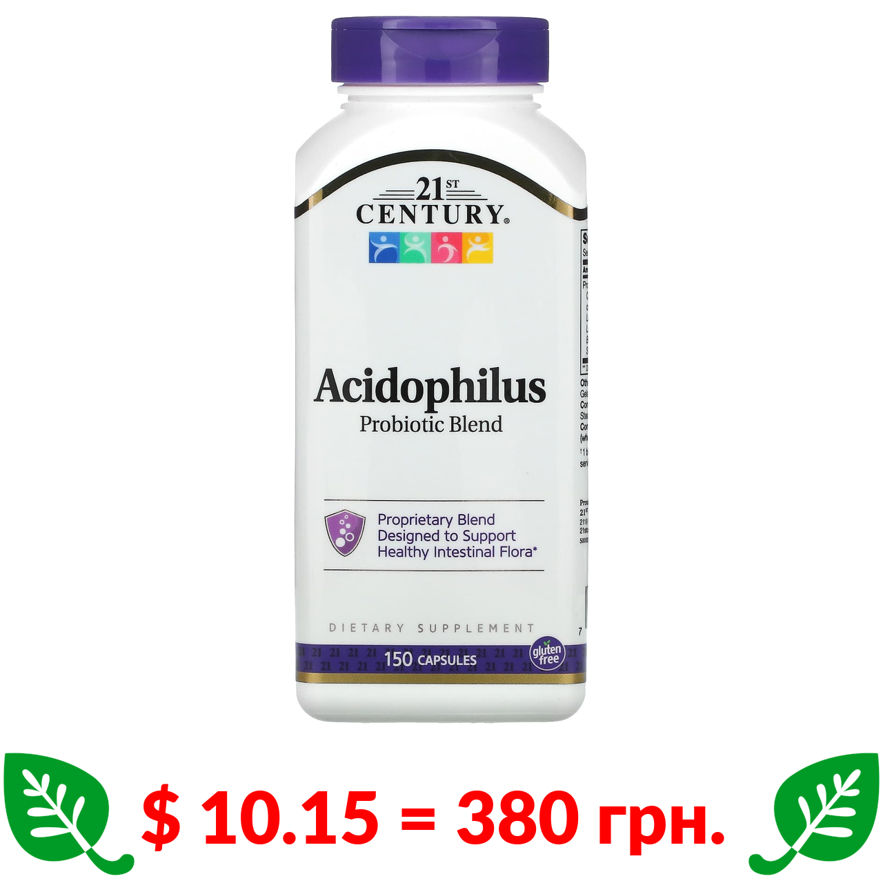 $ 10.15 = 380 грн. 21st Century, Суміш пробіотиків Acidophilus, 150 капсул