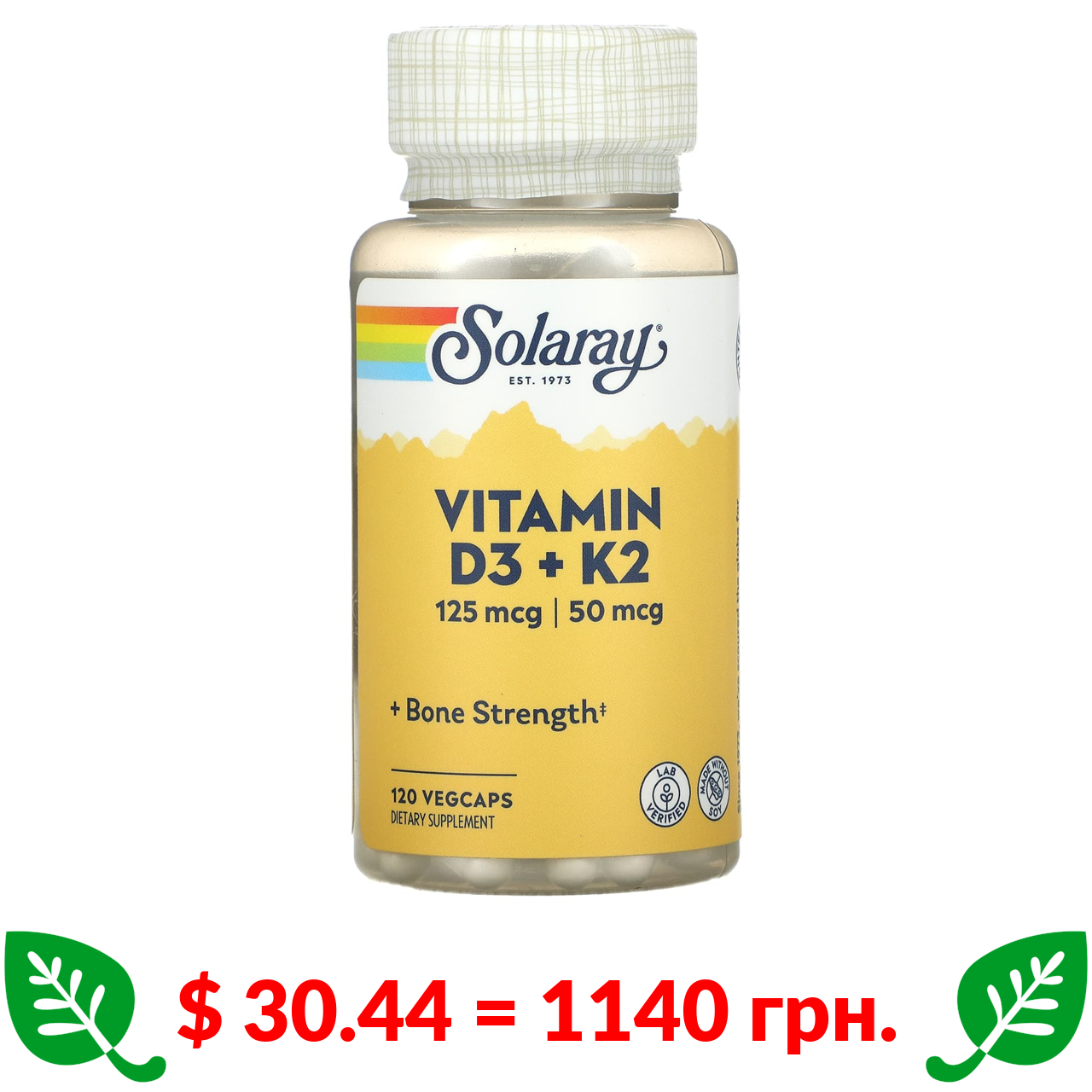 $ 16.79 = 629 грн. Solaray, вітаміни D3 та K2, без сої, 60 капсул VegCap