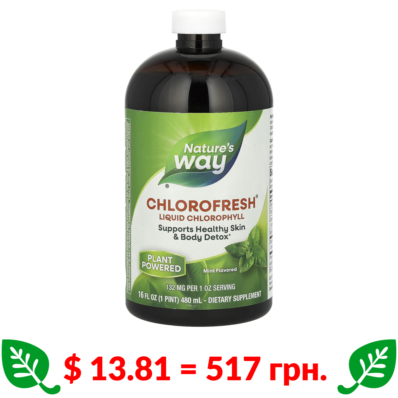 $ 13.81 = 517 грн. ????️ у кошику ????️ Nature’s Way, Chlorofresh, рідкий хлорофіл, м’ята, 132 мг, 480 мл (16 рідк. унцій)
