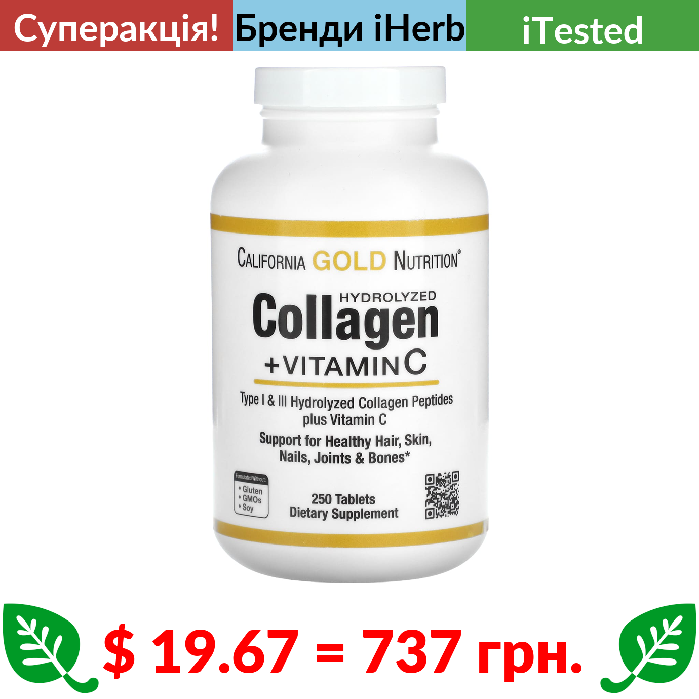 $ 15.57 = 583 грн. ???? cуперакція! ???? California Gold Nutrition, CollagenUP, пептиди гідролізованого морського колагену з гіалуроновою кислотою та вітаміном C, без смакових добавок, 206 г (7,26 унції)