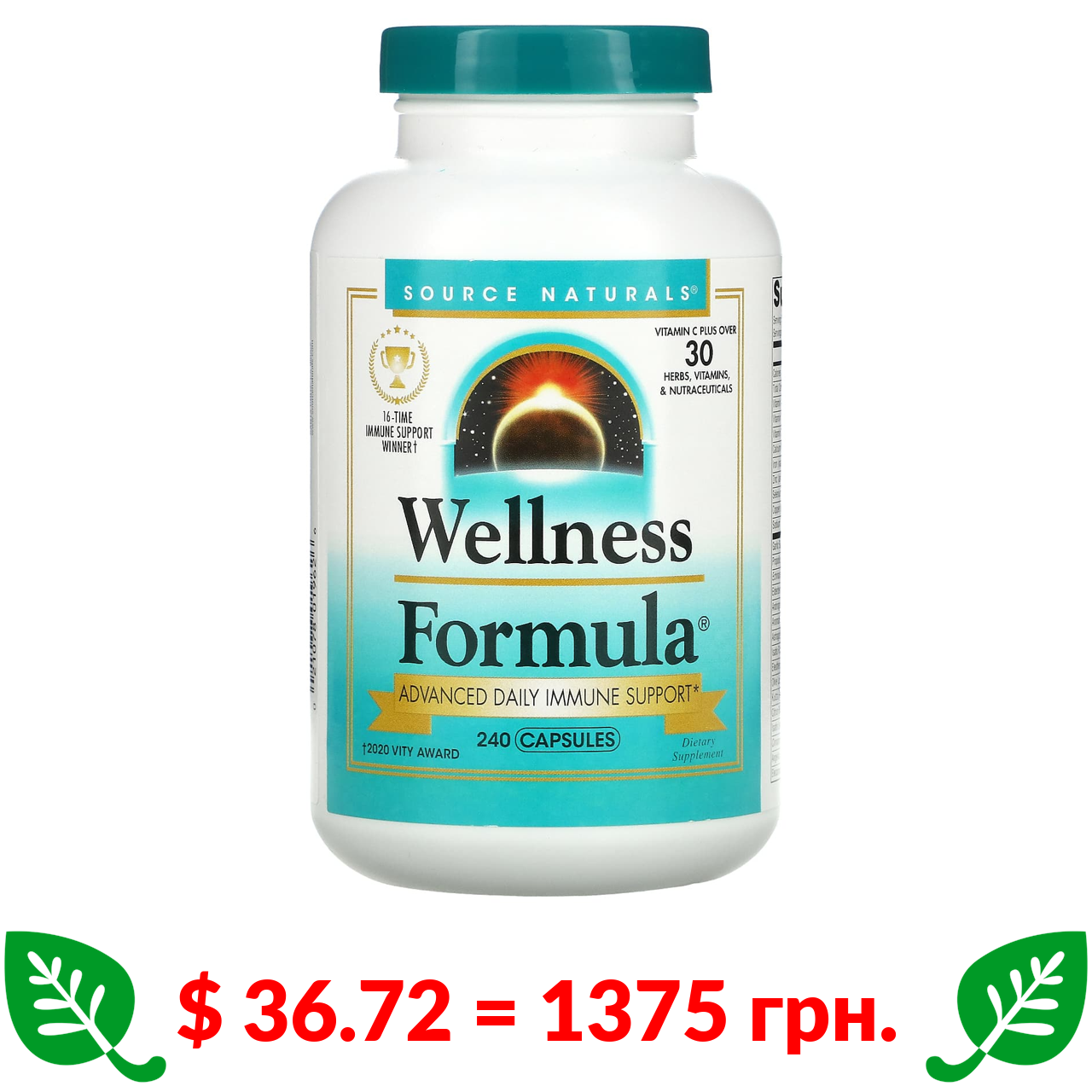 $ 36.72 = 1375 грн. Source Naturals, Wellness Formula, вдосконалена щоденна підтримка імунітету, 240 капсул