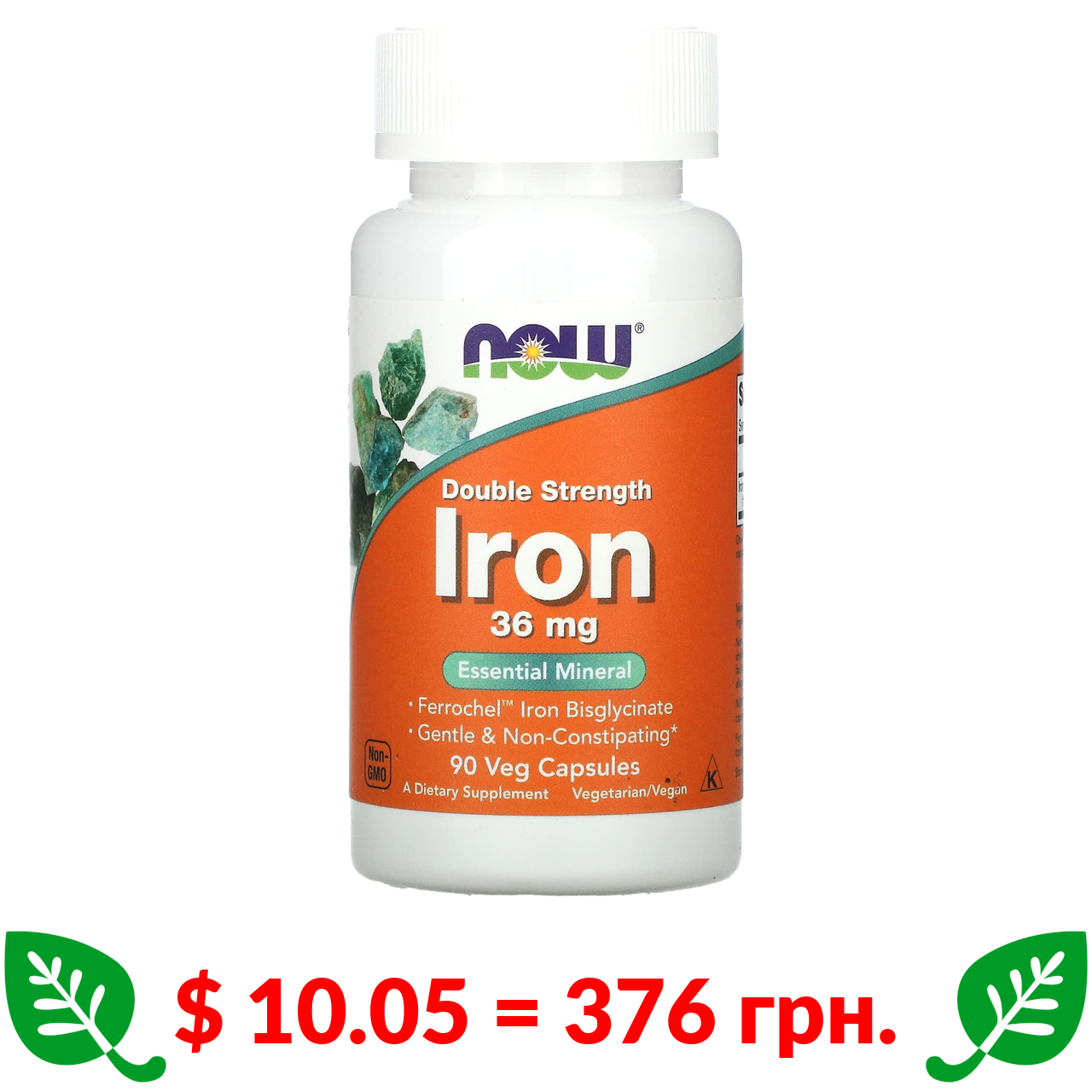 $ 10.05 = 376 грн. Now Foods, залізо подвійної концентрації, 36 мг, 90 вегетаріанських капсул
