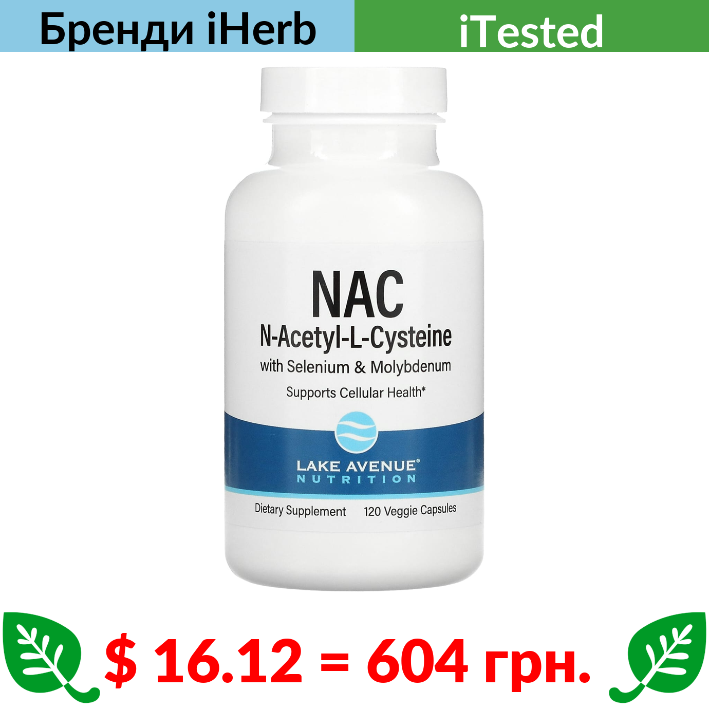 $ 16.12 = 604 грн. Lake Avenue Nutrition, NAC, N-ацетилцистеїн із селеном і молібденом, 600 мг, 120 вегетаріанських капсул