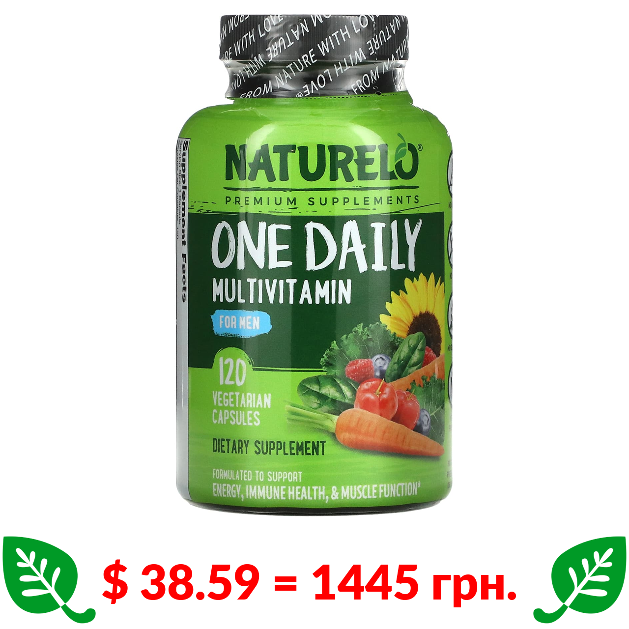 $ 38.59 = 1445 грн. NATURELO, мультивітамінний комплекс для чоловіків One Daily, 120 вегетаріанських капсул