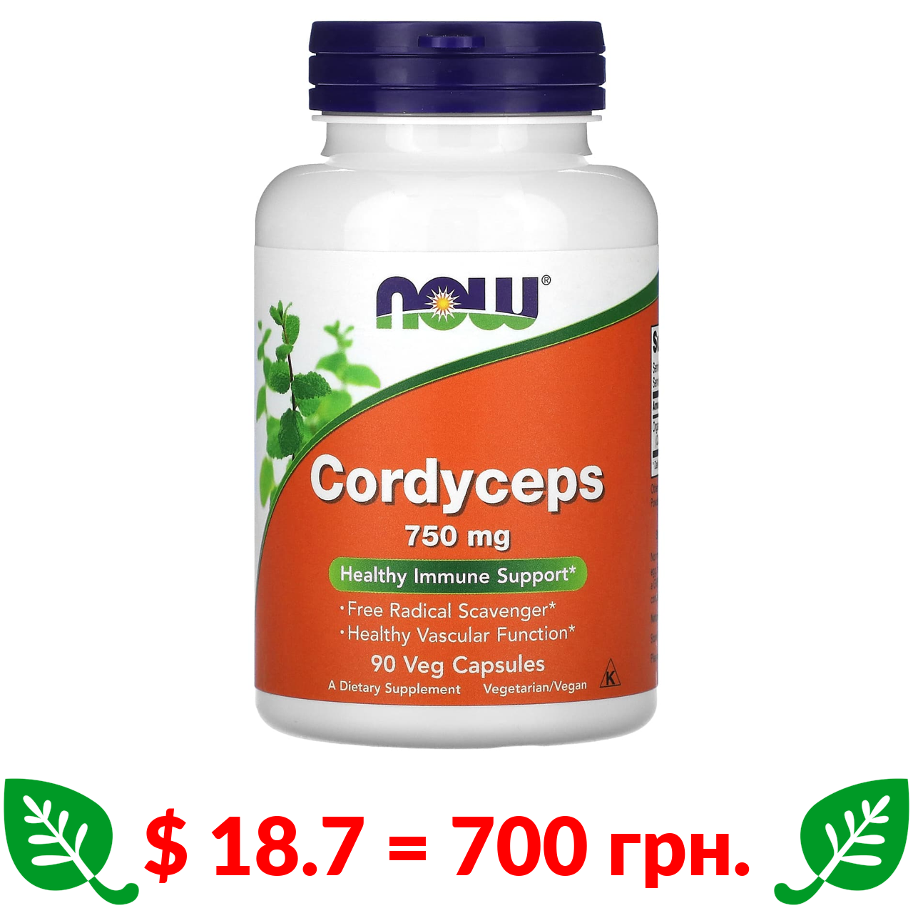 $ 18.7 = 700 грн. Now Foods, кордицепс, 750 мг, 90 вегетаріанських капсул