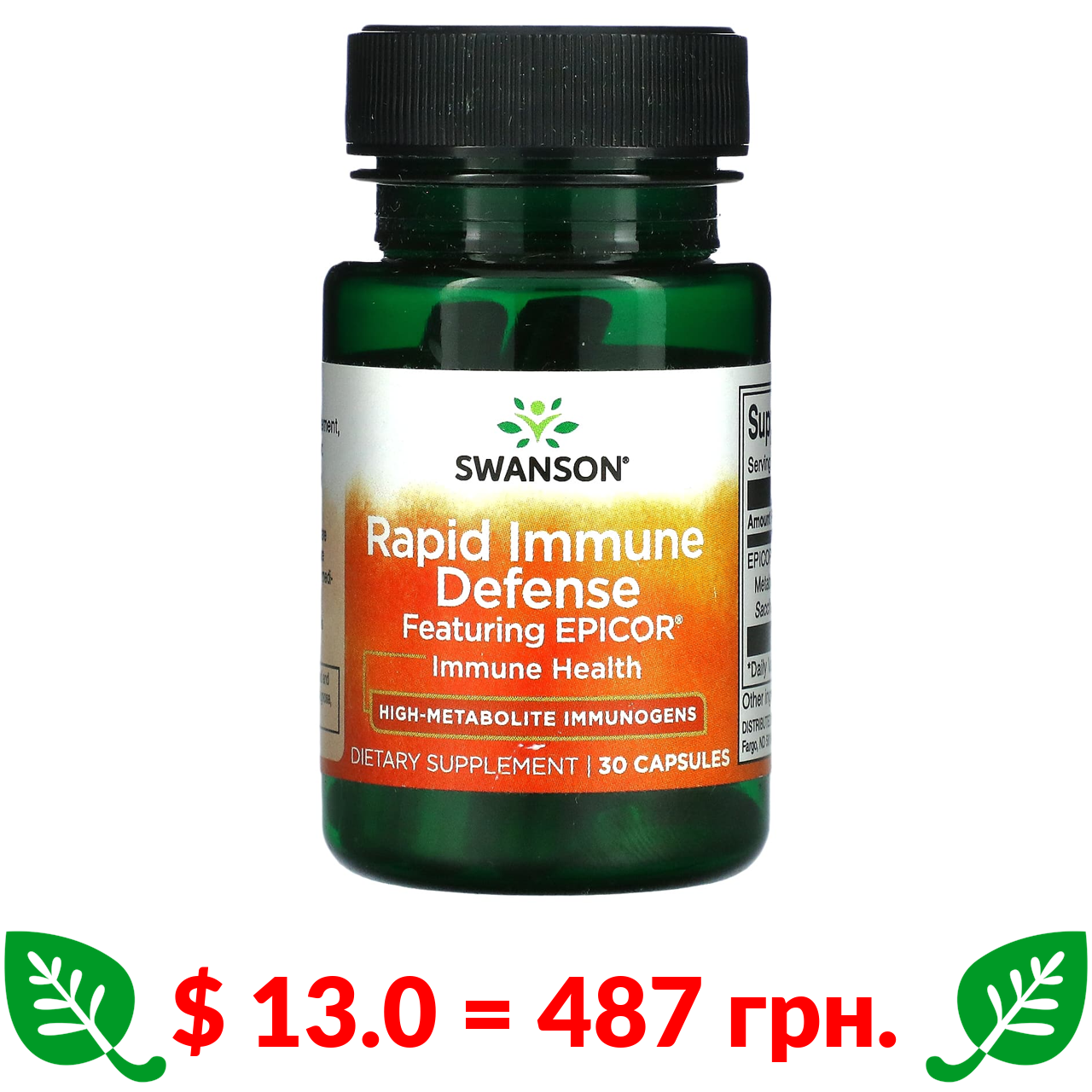 $ 13.0 = 487 грн. Swanson, Rapid Immune Defense, Featuring Epicor, Immune, 30 Capsules