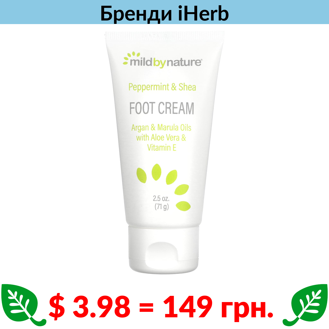 $ 3.98 = 149 грн. Mild By Nature, крем для ніг з перцевою м’ятою, олією ши, аргани та марули, 2,5 унції (71 г)
