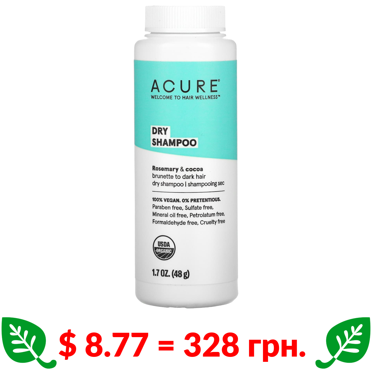 $ 8.77 = 328 грн. ACURE, Dry Shampoo, Brunette to Dark Hair, Rosemary & Cocoa, 1.7 oz (58 g)
